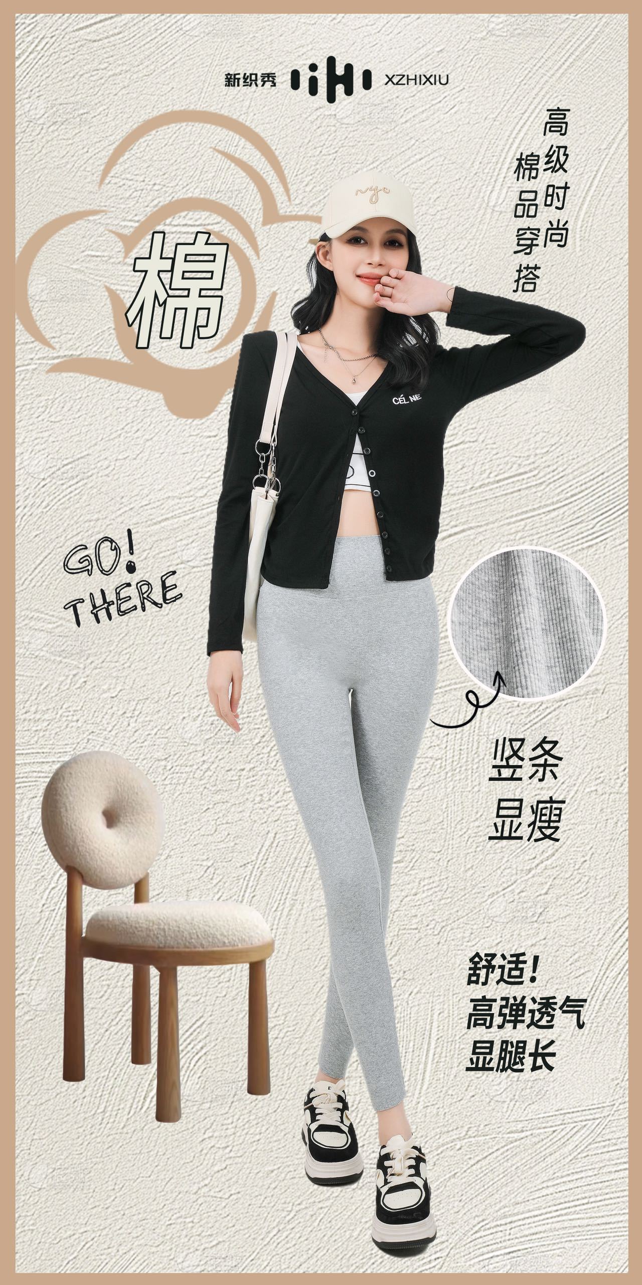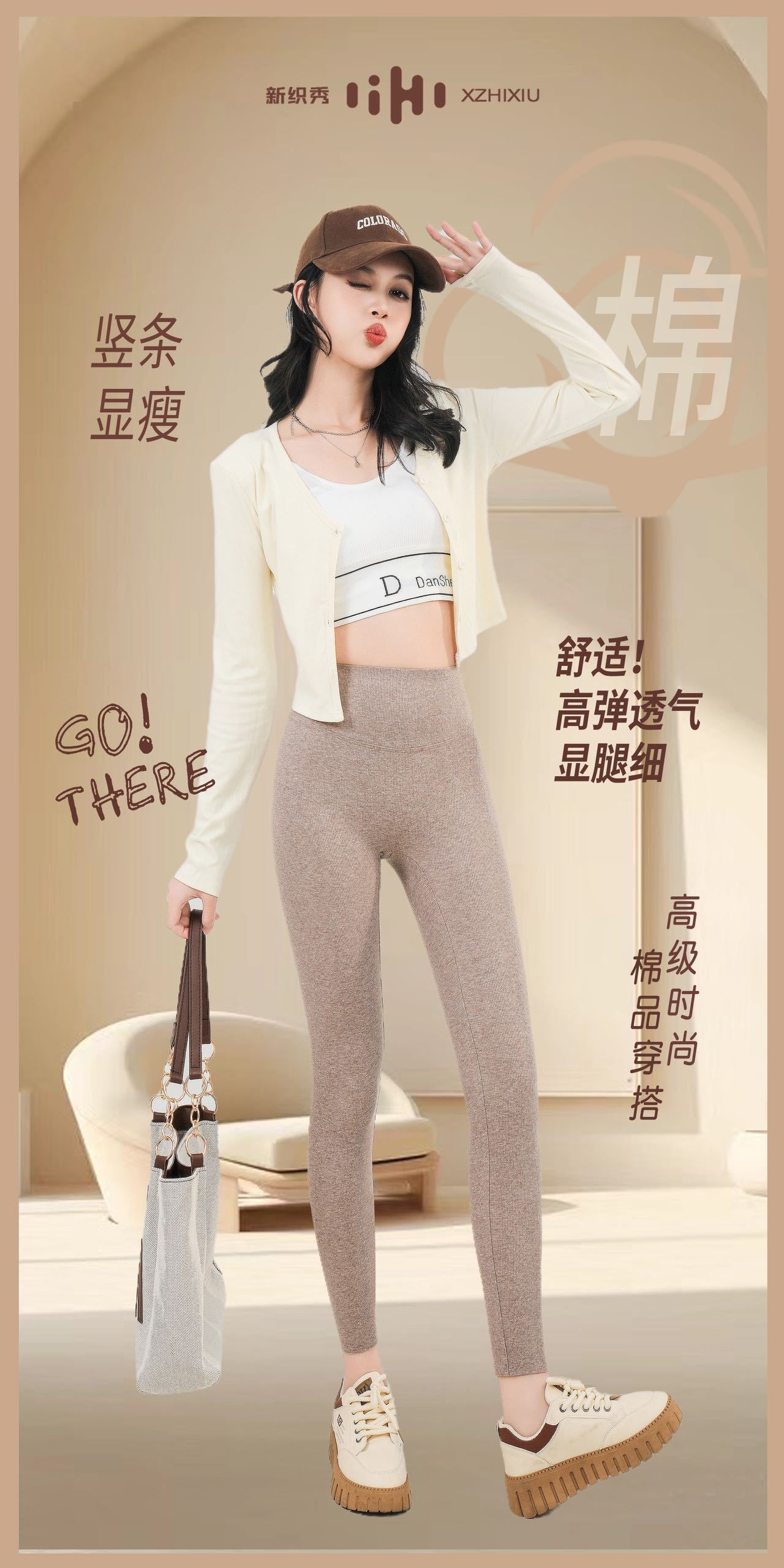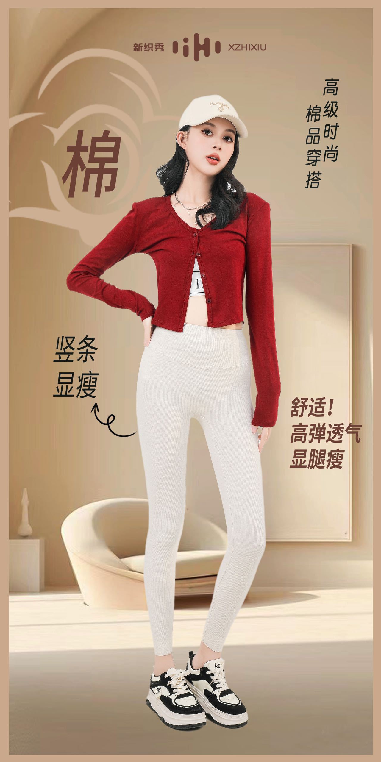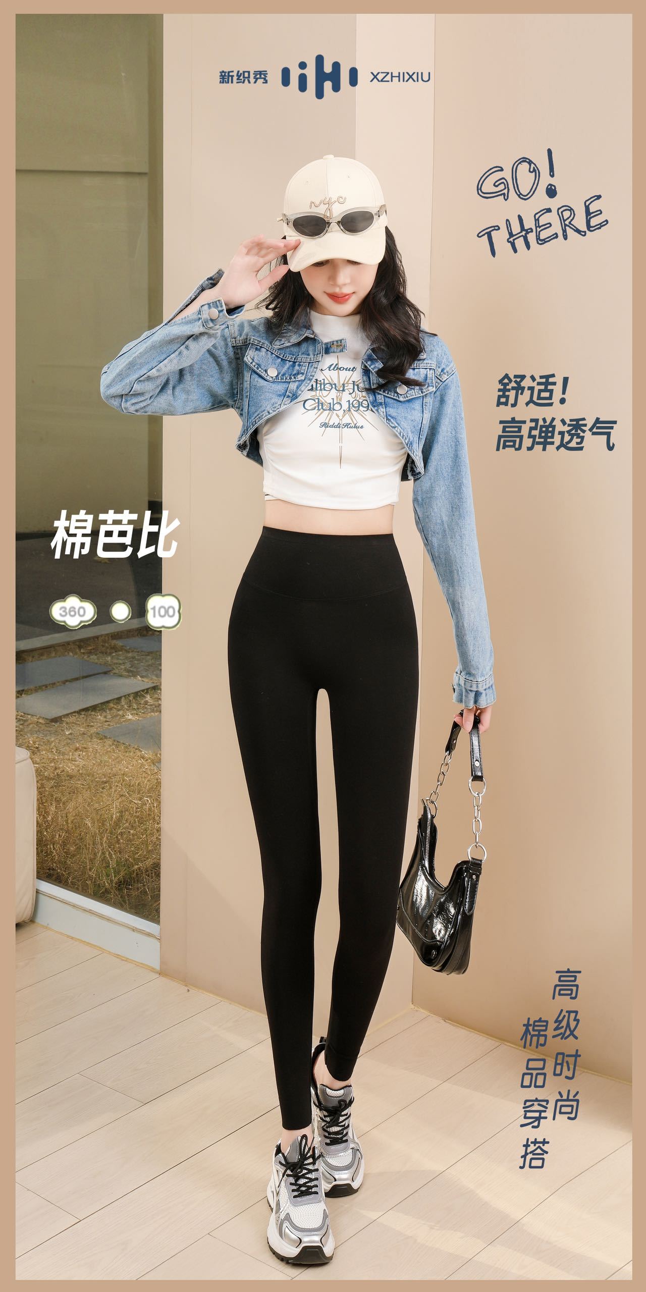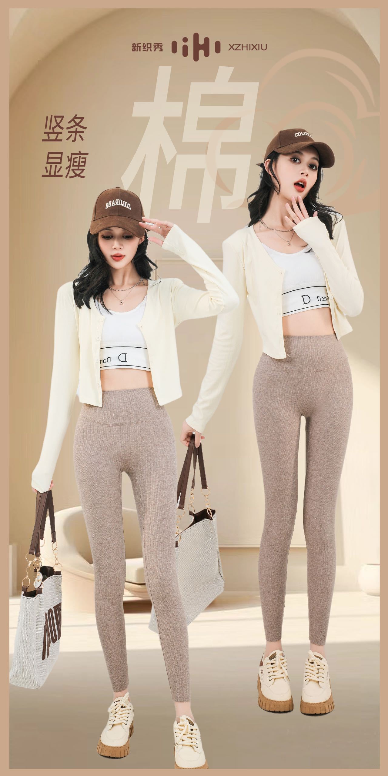 Primavera y Verano Nuevo Algodón Pantalones Barbie Cintura Alta Control de Abdomen Levanta Glúteos Leggings Acanalados Ropa Exterior Sin Costuras Pantalones Recortados