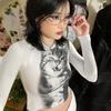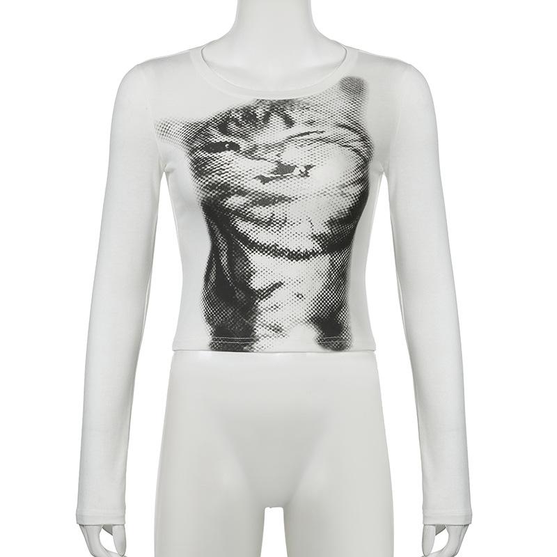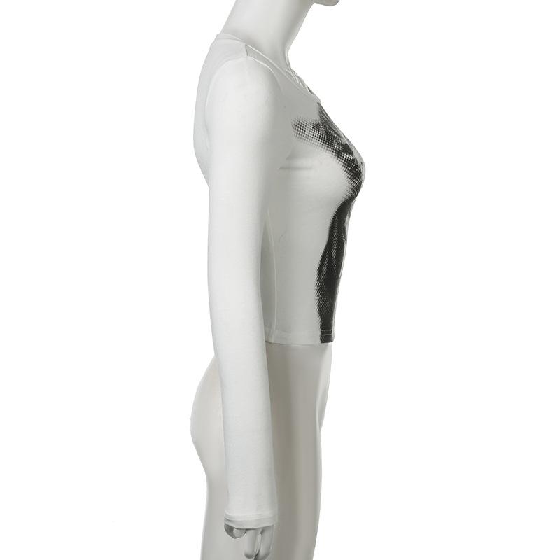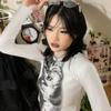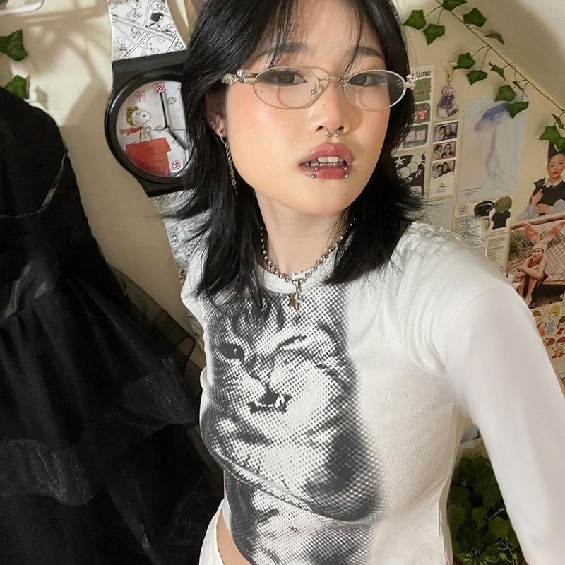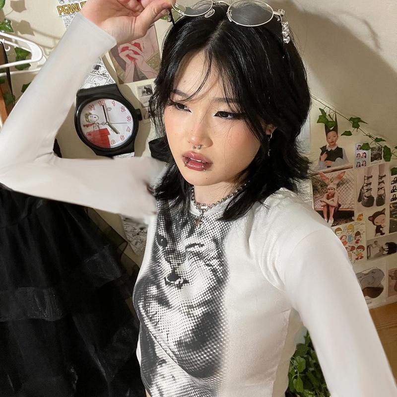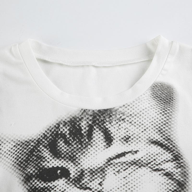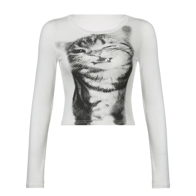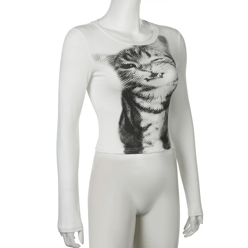 Camiseta de Verano 2025 con Estampado de Gato Lindo, Cuello Redondo, Manga Larga, Spice Girls Street, Distintiva, Ombliguera, Adelgazante, Top Combinable