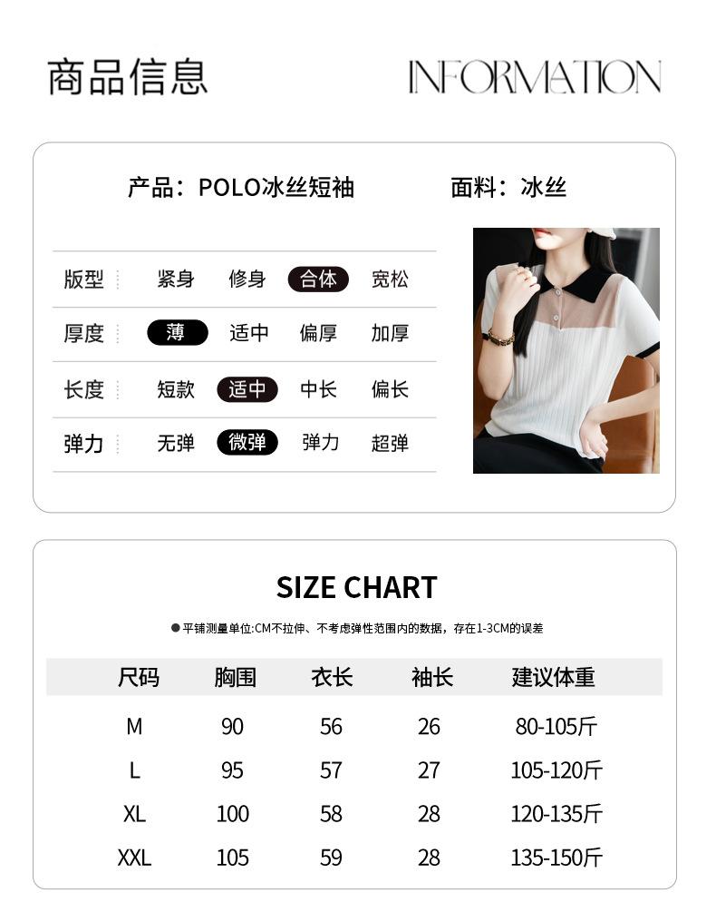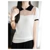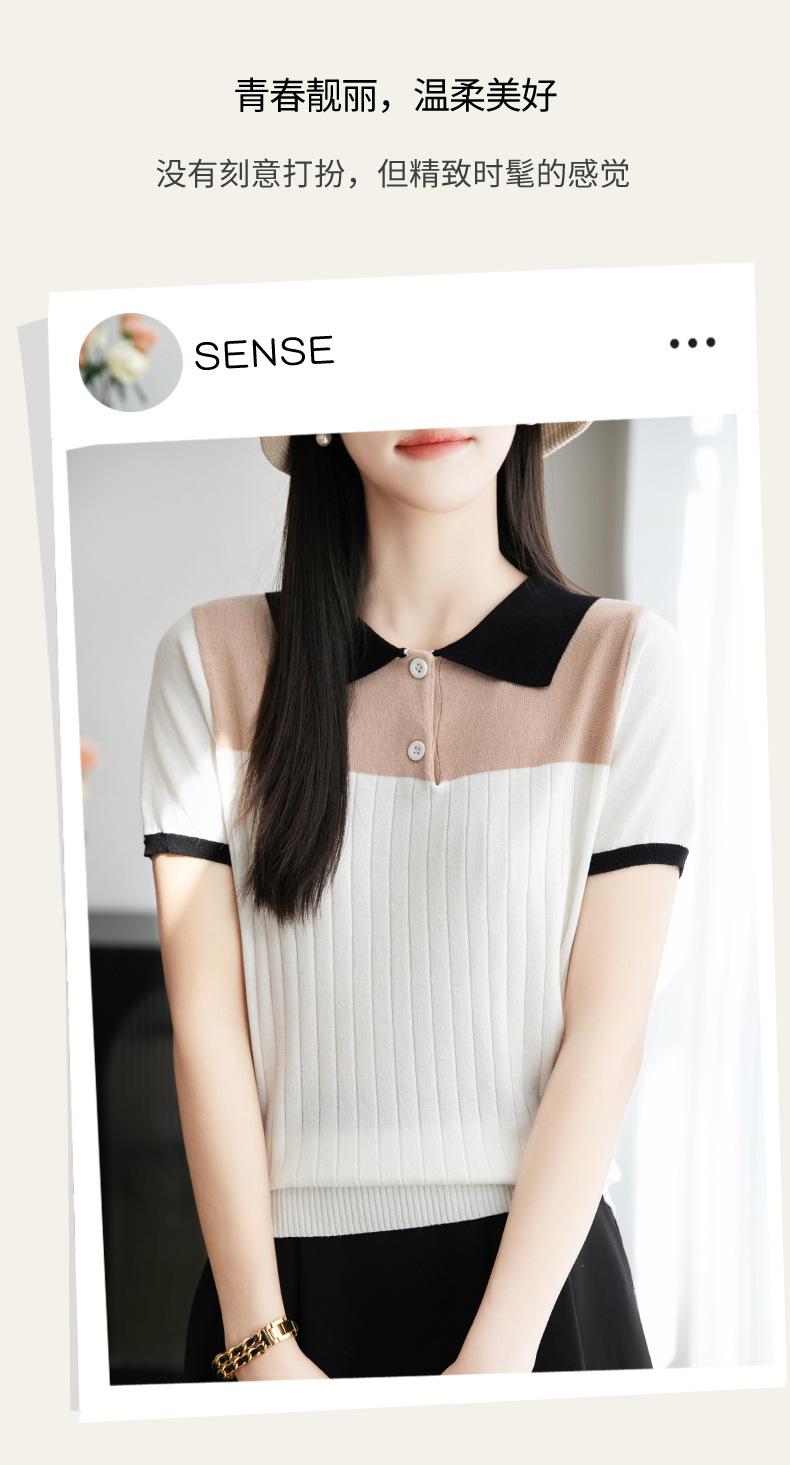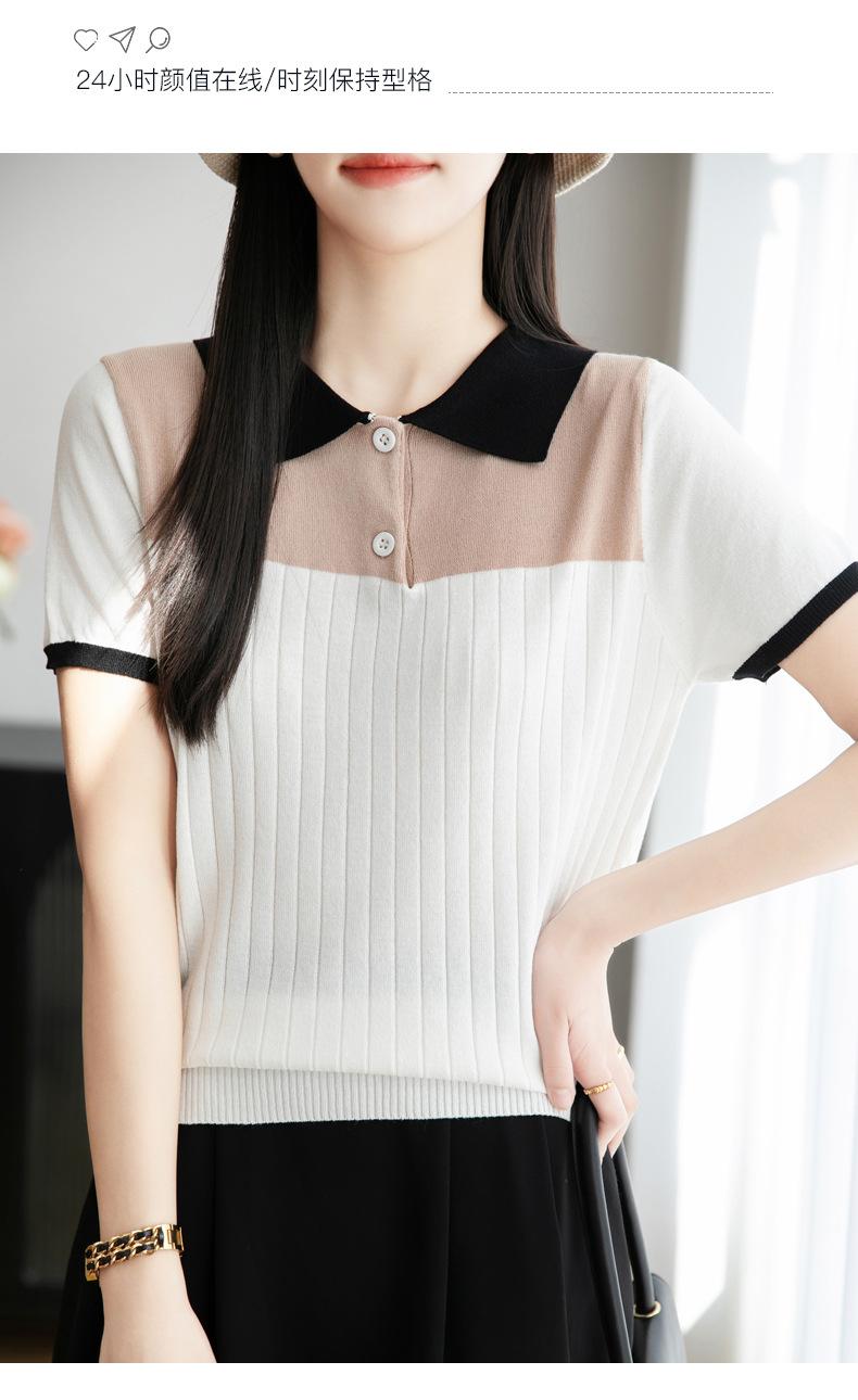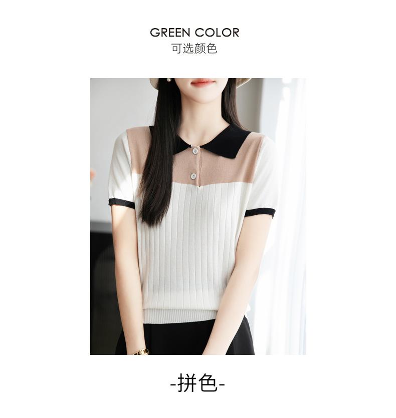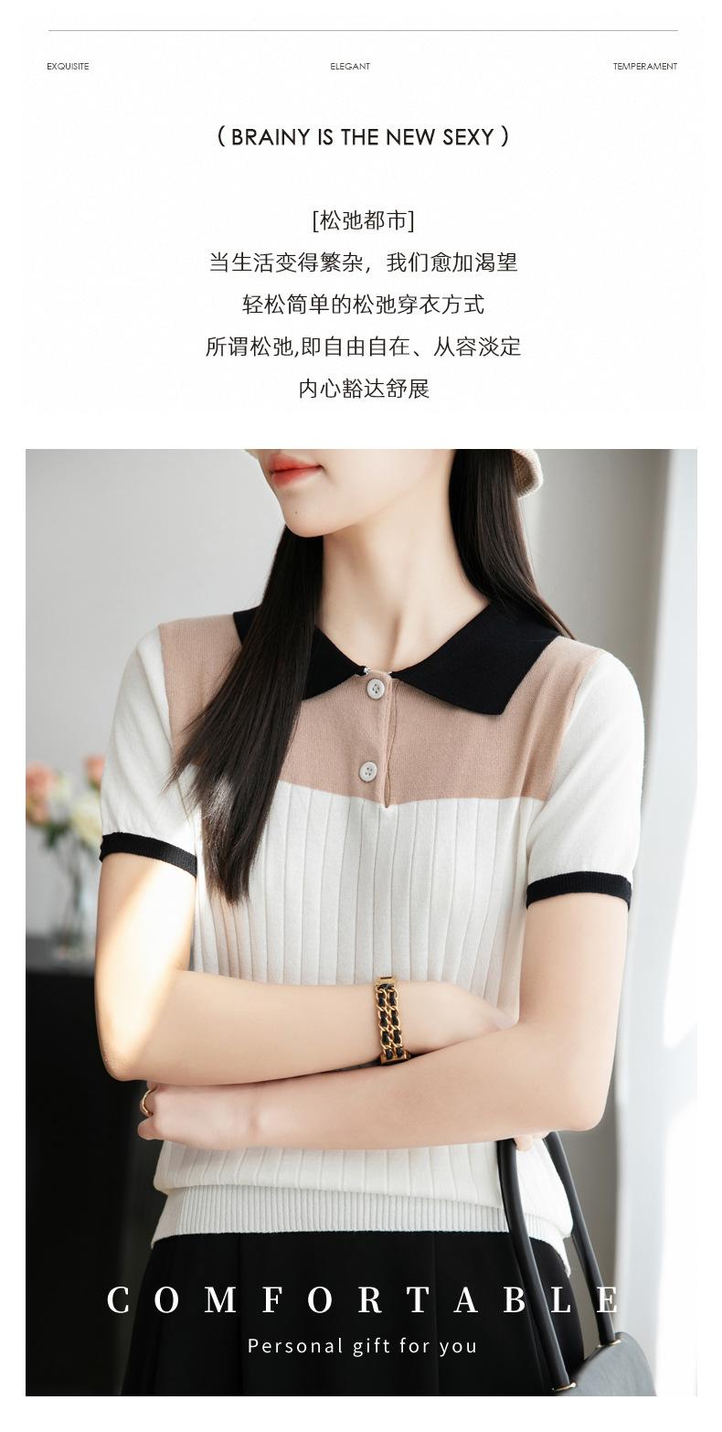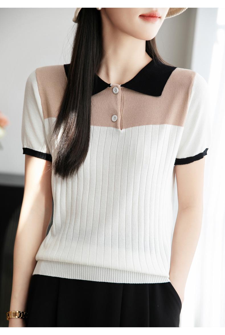 2025 Estilo Coreano Hermosa Camiseta de Punto de Manga Corta con Cuello Polo para Mujer Verano para Ir al Trabajo Combinación Versátil Camiseta de Punto Camiseta Top de Seda Helada