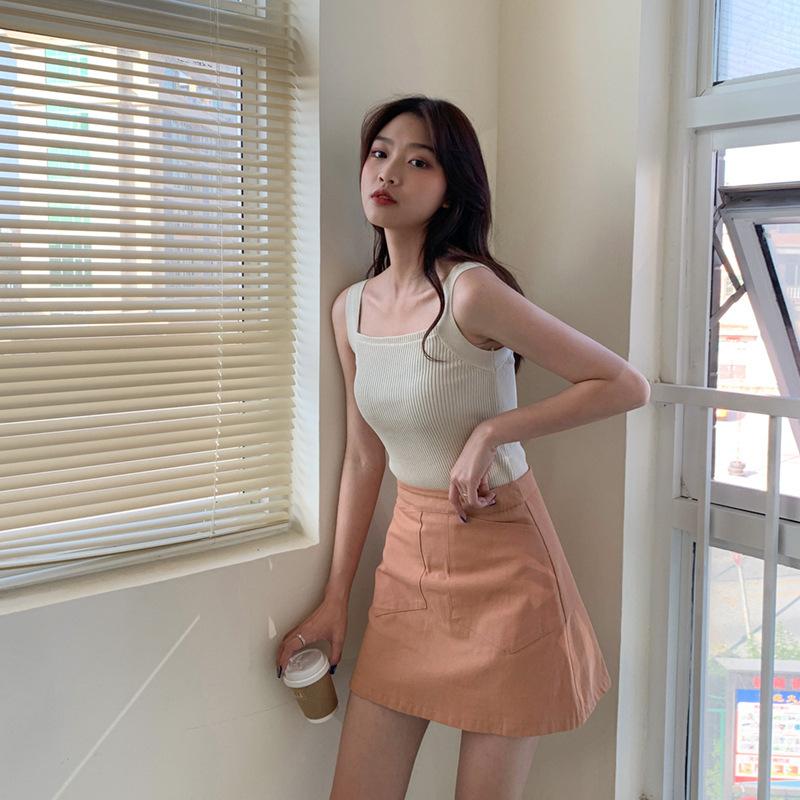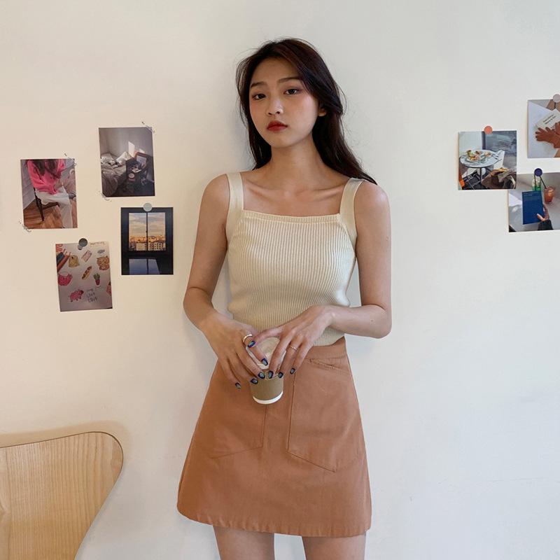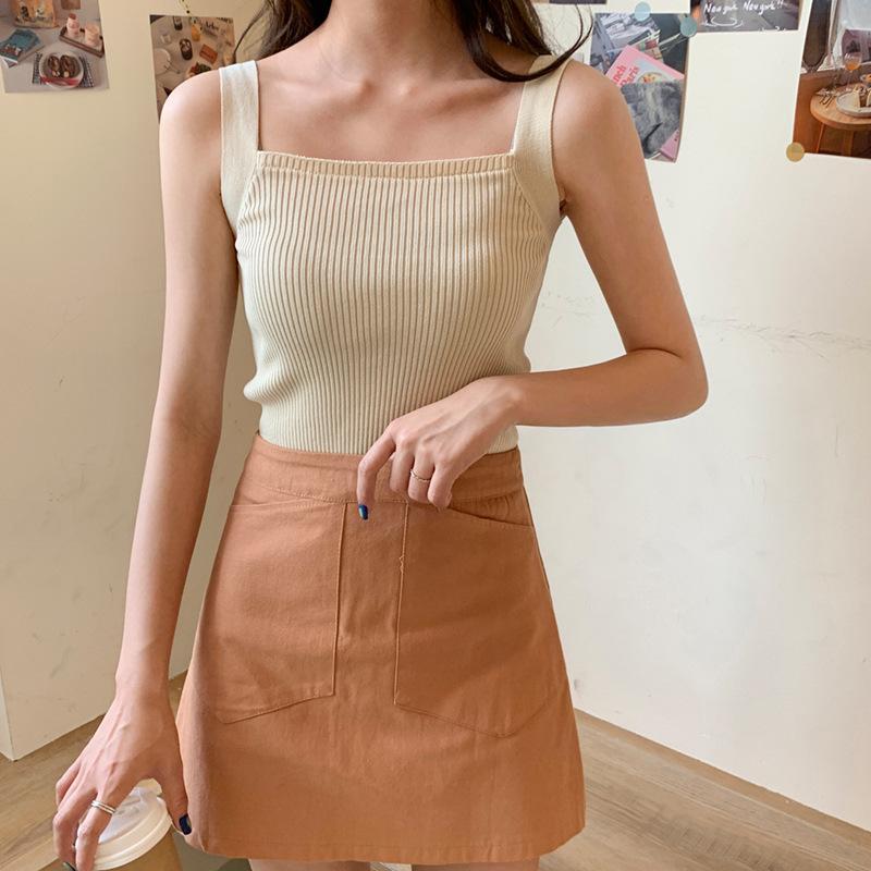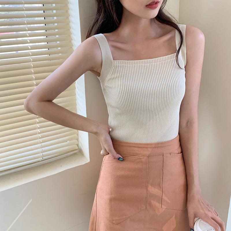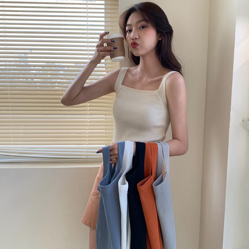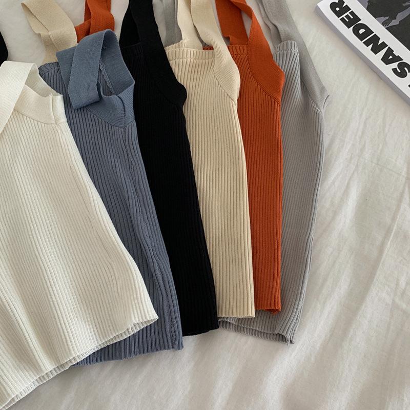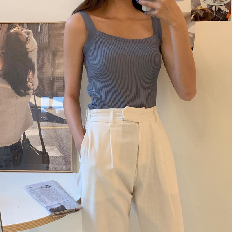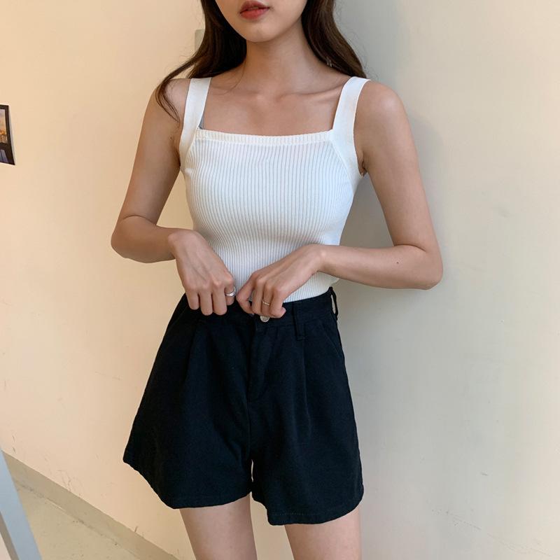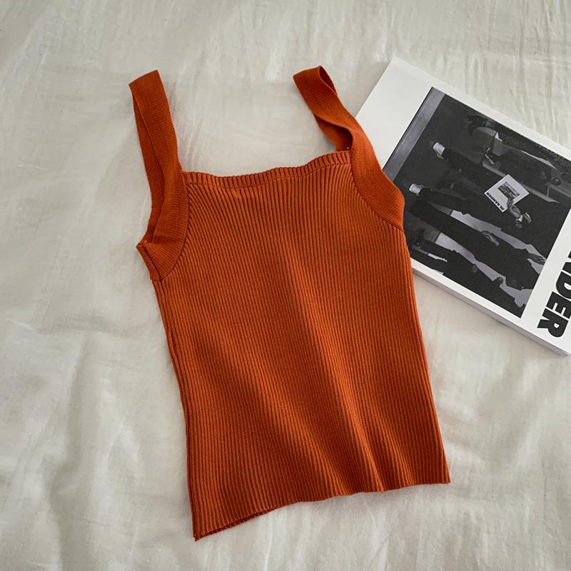 Camisola pequeña de punto negra para mujer, ropa exterior, ins, moda, sin mangas, camiseta básica, primavera y verano, interior de seda de hielo, top corto
