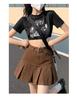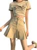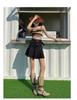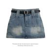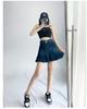 Falda Retro de Mezclilla Media Longitud 2023 Nueva Primavera Temprana Cintura Alta Adelgazante Falda Plisada Antitransparente Americana Línea A