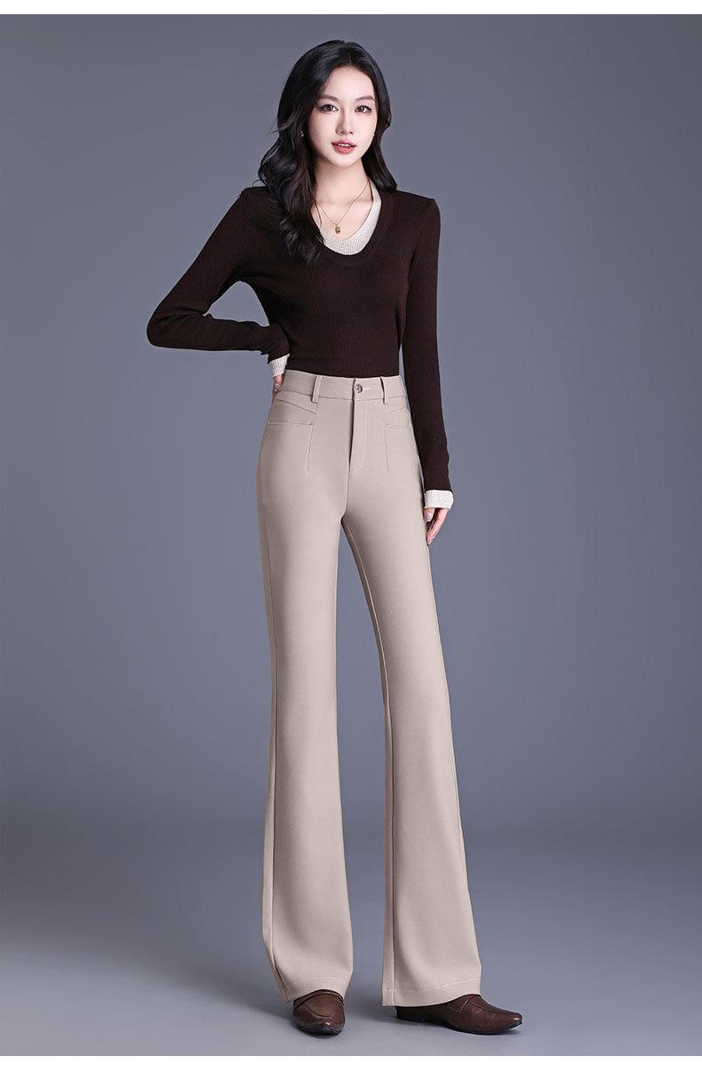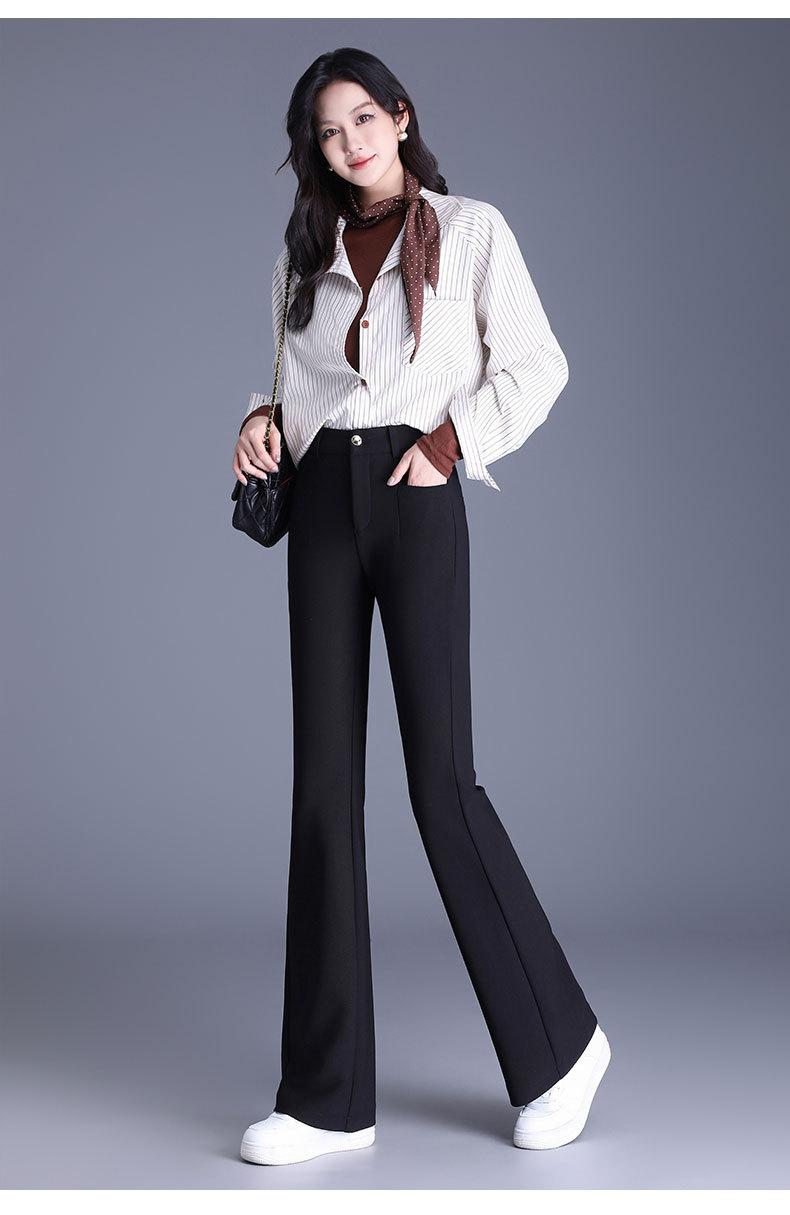 Pantalones acampanados delgados de cintura alta para mujer Primavera y otoño Pantalones largos casuales para mujer Pantalones negros pequeños Combinan con todo 2025 Nueva llegada