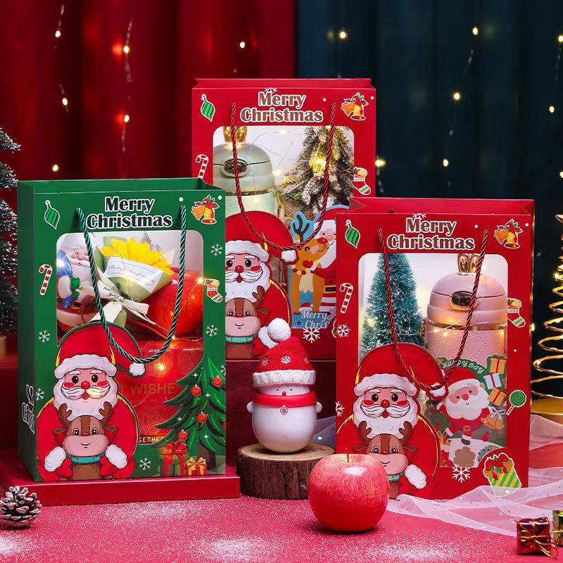 Bolsa de regalo de manzana, bolsa de regalo, bolsa de regalo de Nochebuena, bolsa de regalo de Navidad transparente con ventana abierta, bolsa de papel