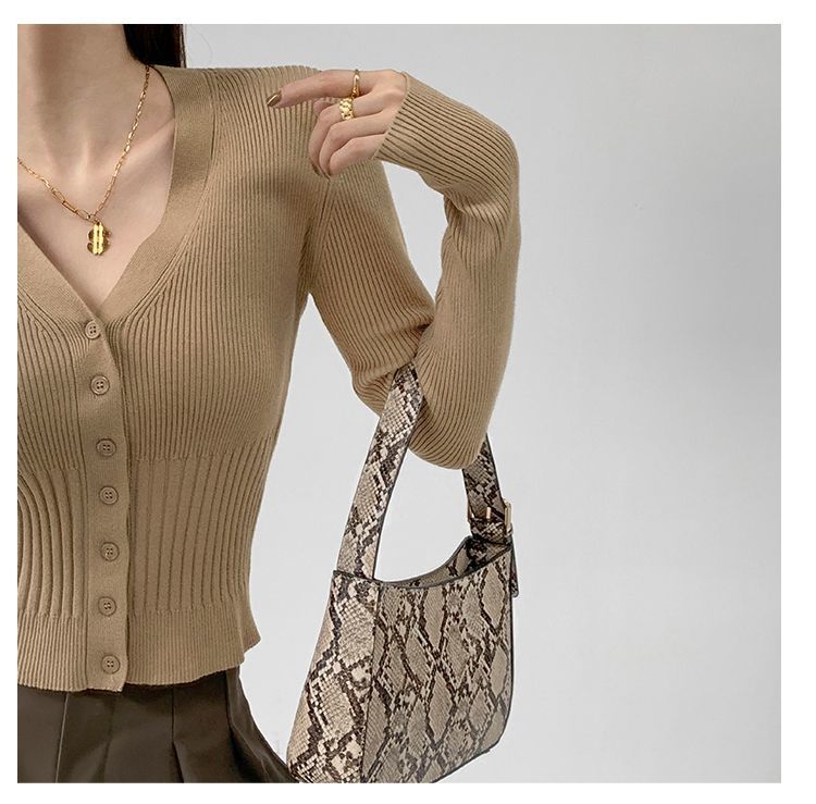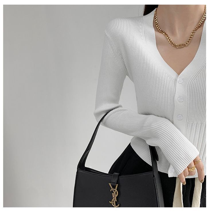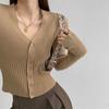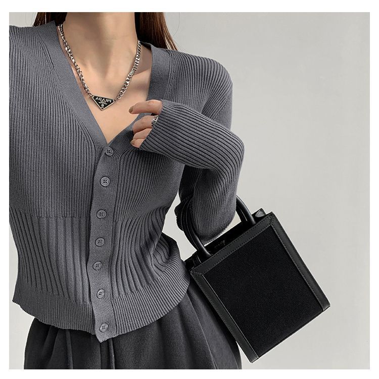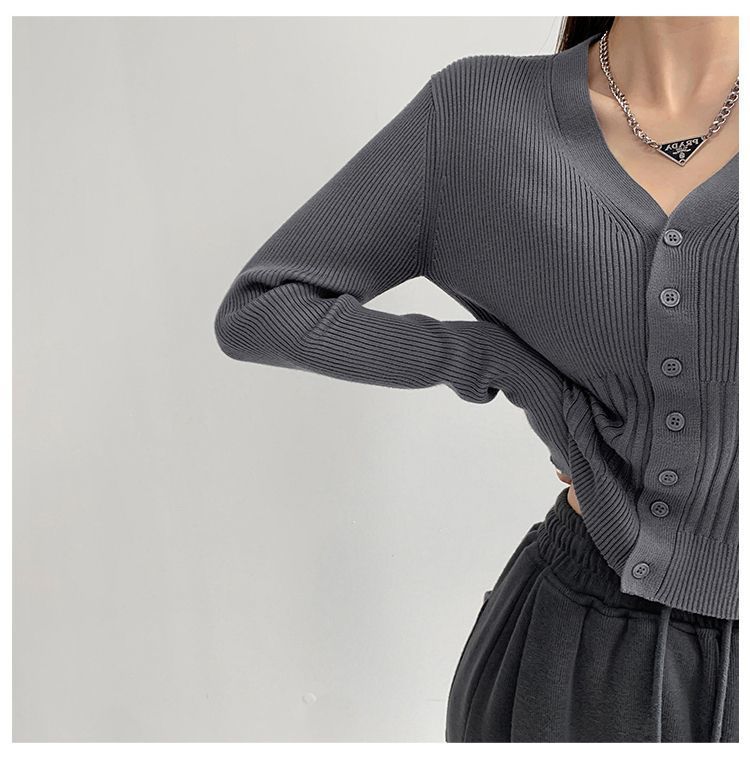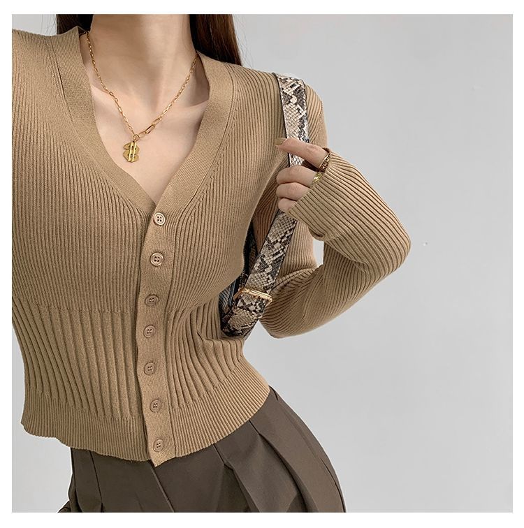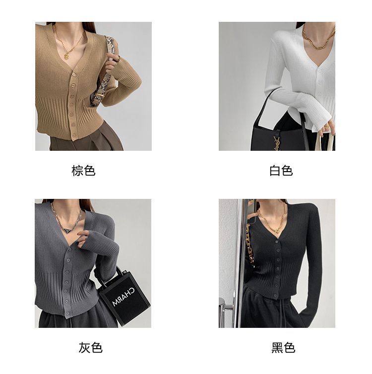 Sencillo principios de otoño nuevo estilo occidental reductor de edad top chic coreano cárdigan abrigo de punto corto para mujer