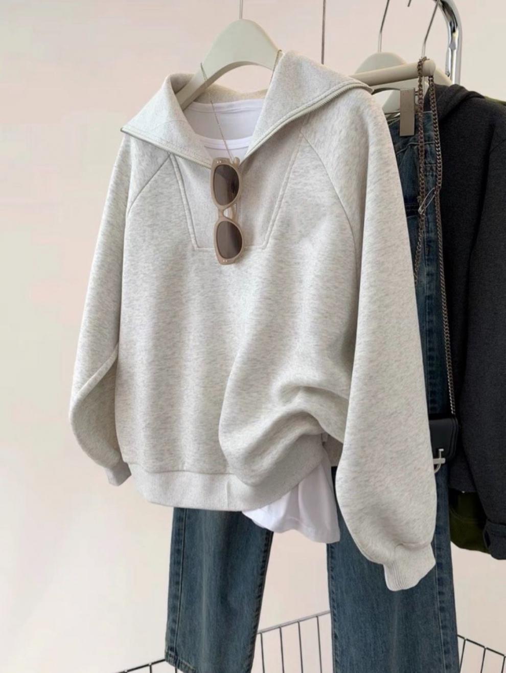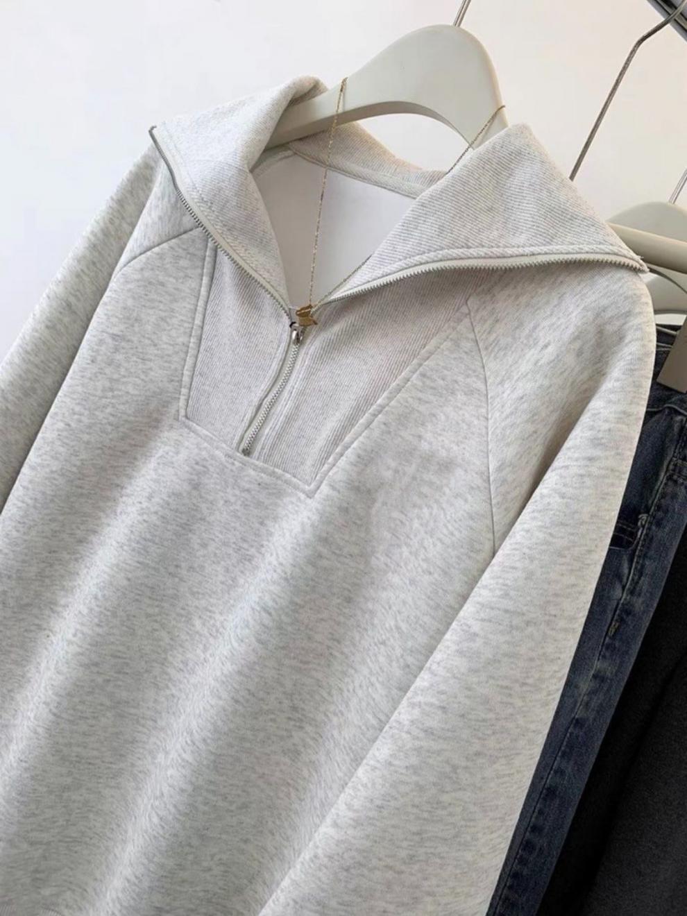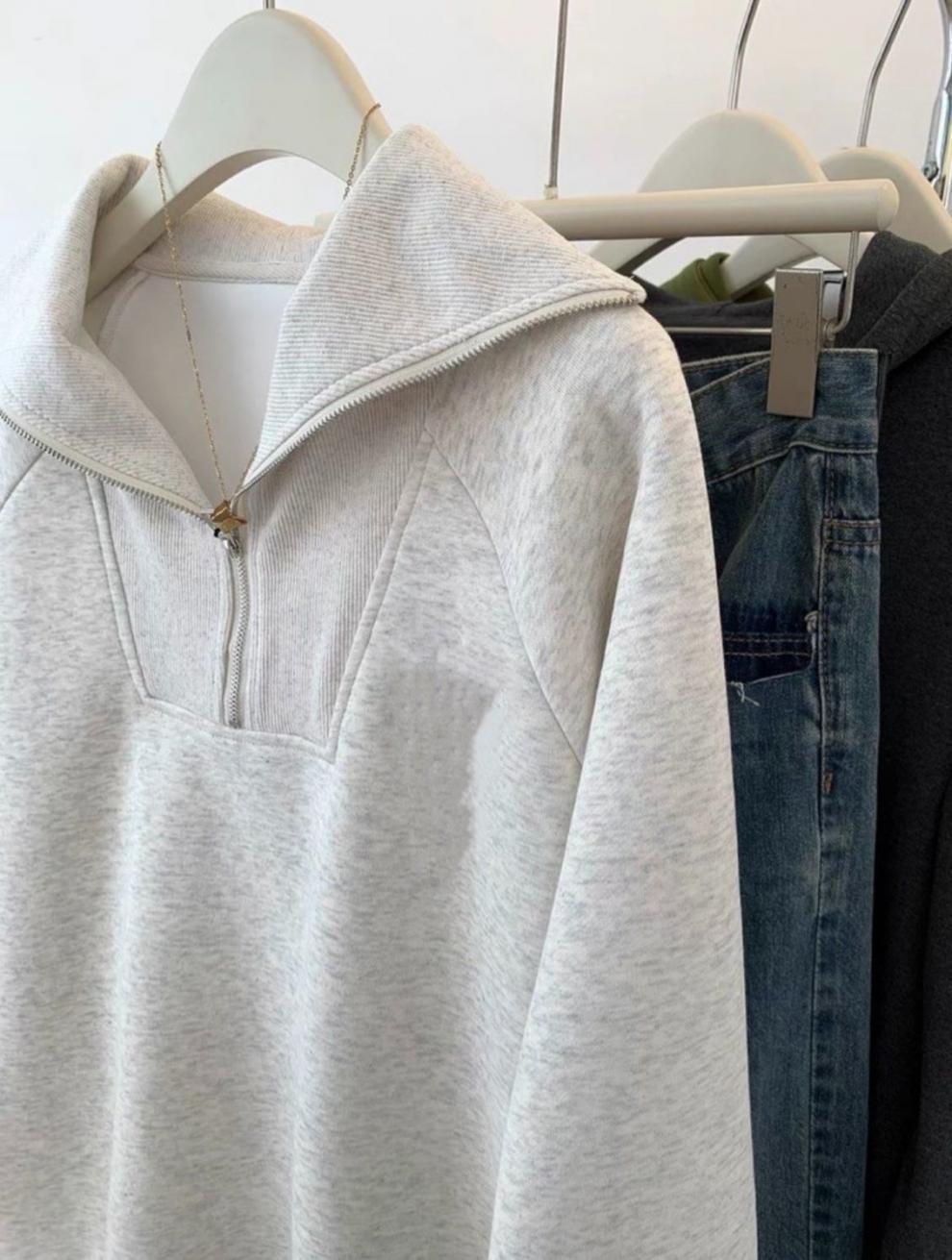 Polo de hombro estilo universitario suéter abrigo cuello alto para mujer primavera y otoño vibra americana alta calle media cremallera manga larga