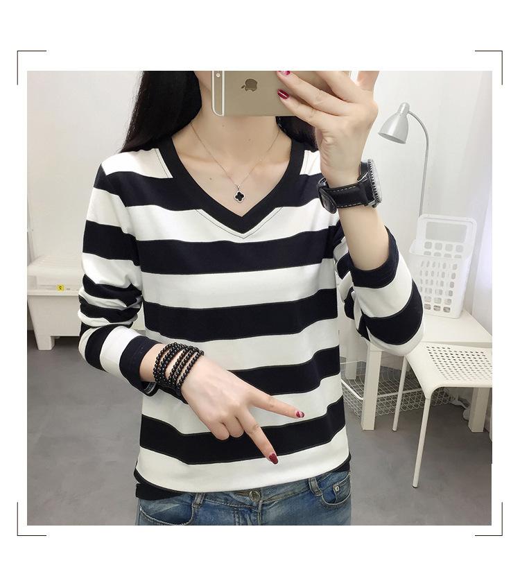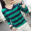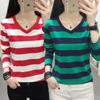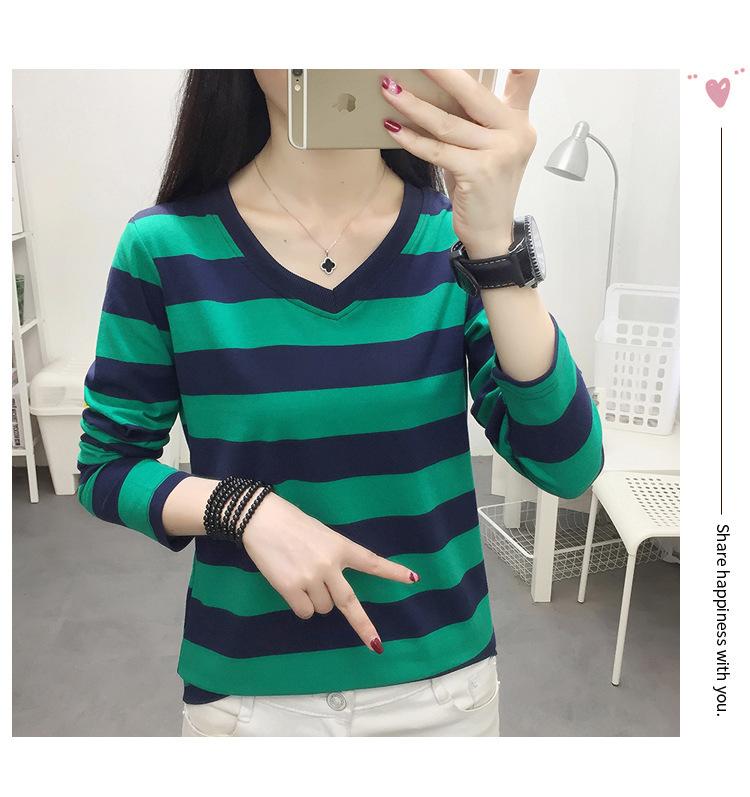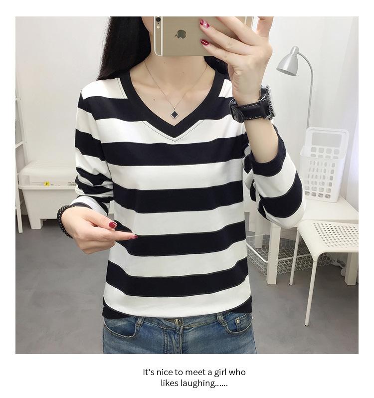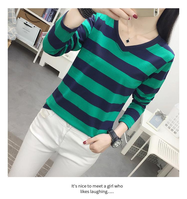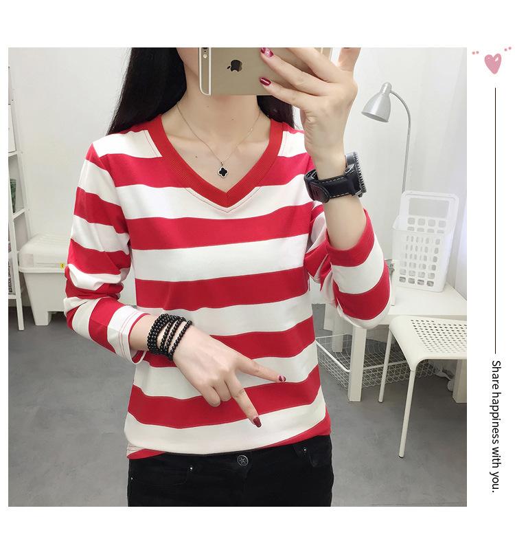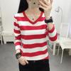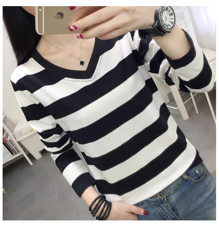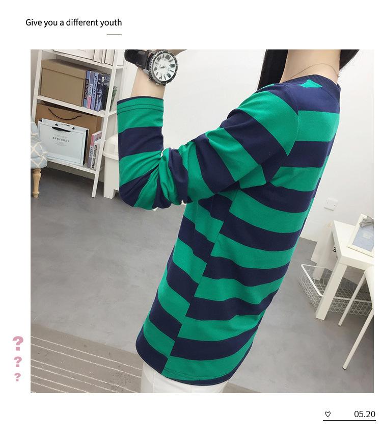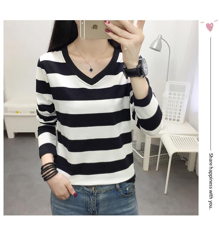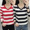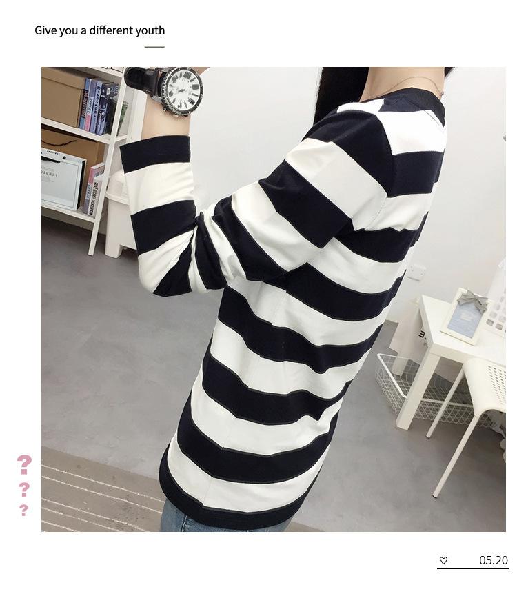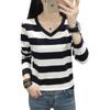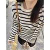Primavera y Otoño 2021 Nuevo Estilo Coreano Talla Grande Camiseta a Rayas para Mujer Manga Larga Top Holgado Camiseta Básica para Mujer ins Trendy