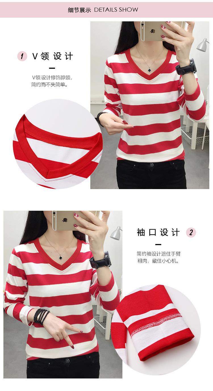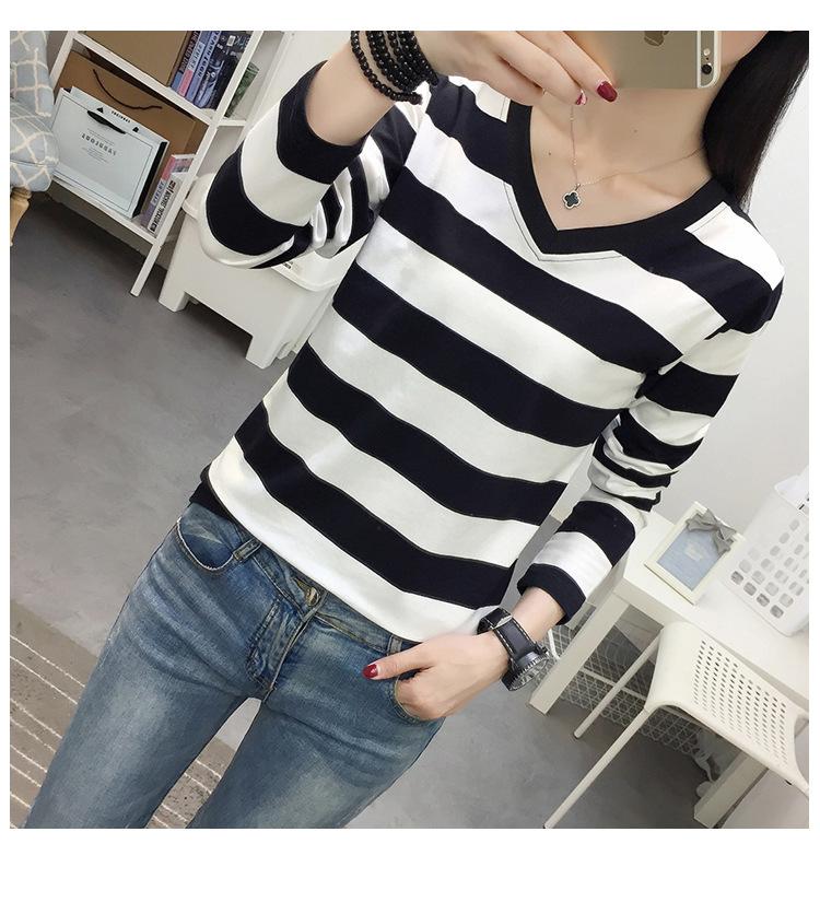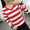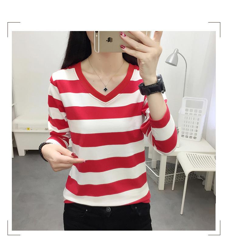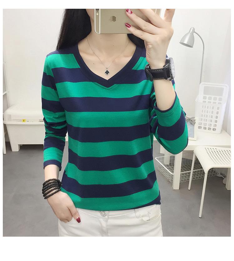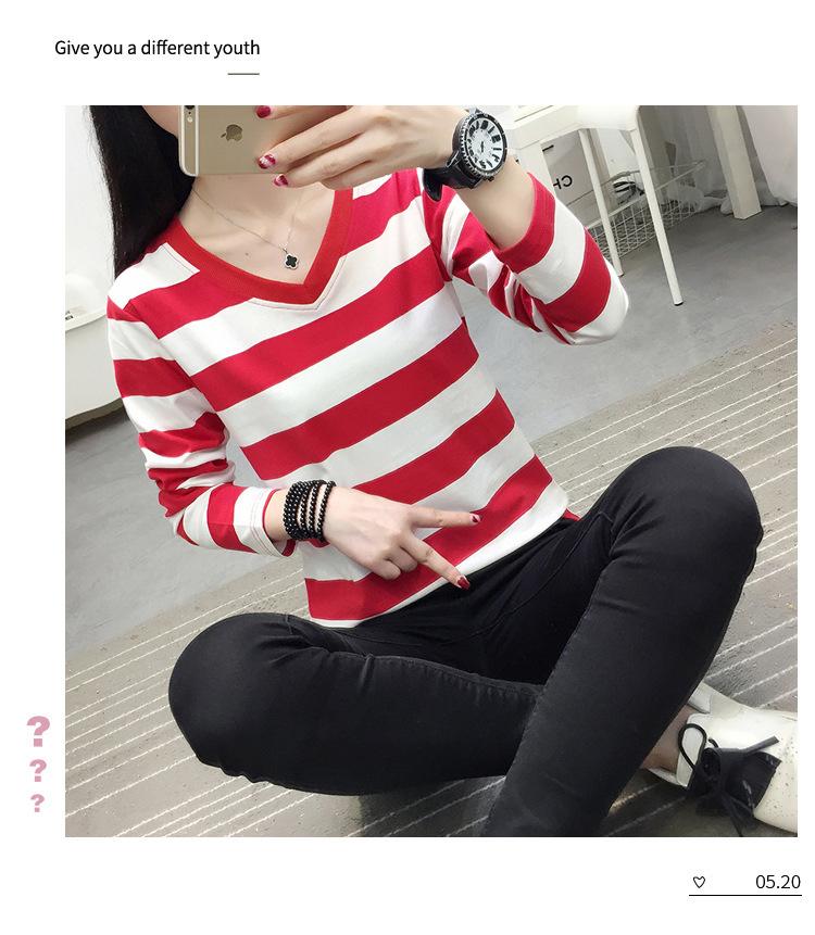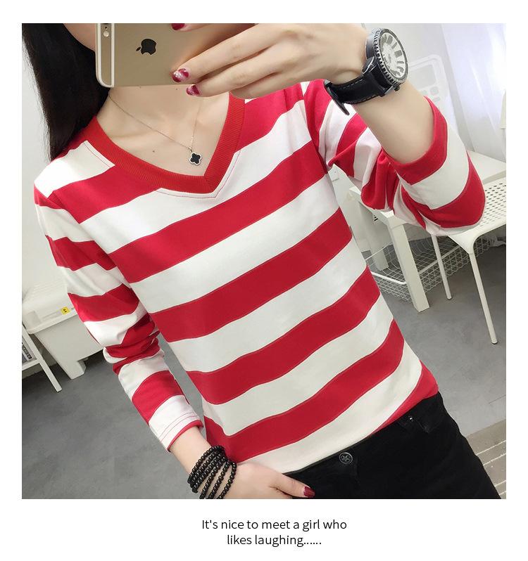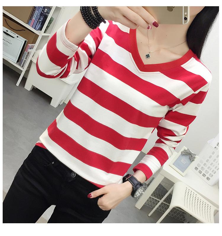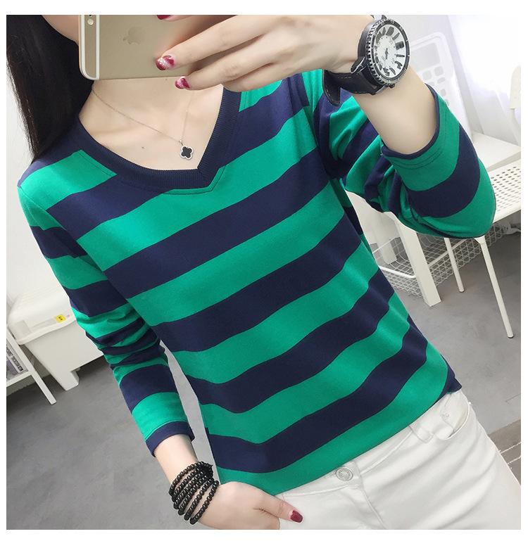 Primavera y Otoño 2021 Nuevo Estilo Coreano Talla Grande Camiseta a Rayas para Mujer Manga Larga Top Holgado Camiseta Básica para Mujer ins Trendy