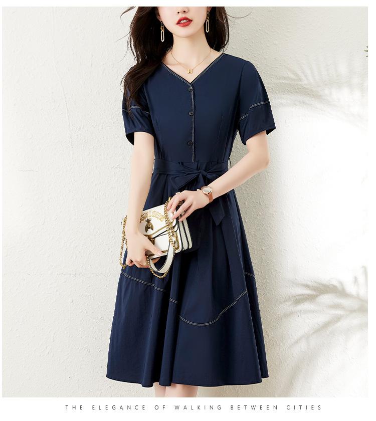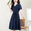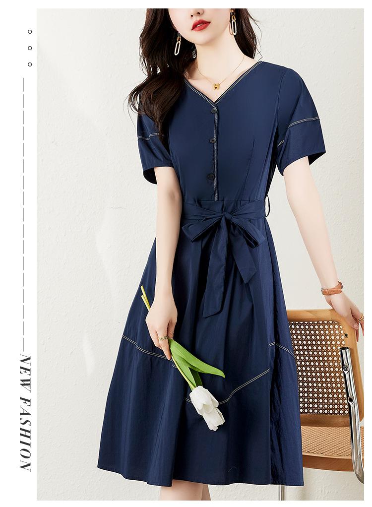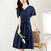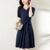 Chica gordita Moda talla grande Vestido francés con cuello en V Verano 2025 Retro Cintura Elegante Falda línea A