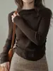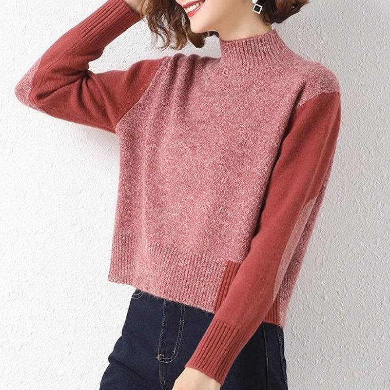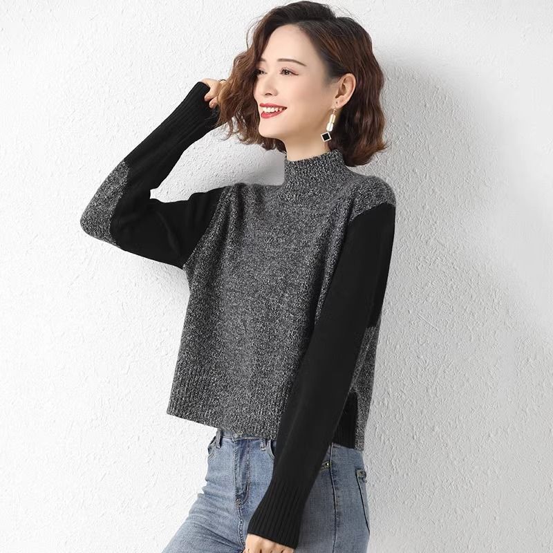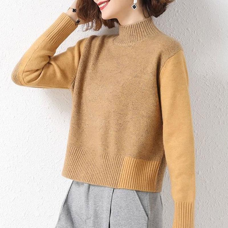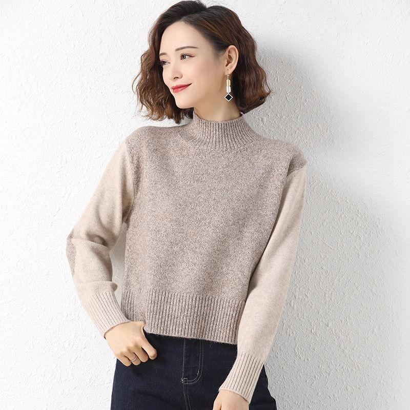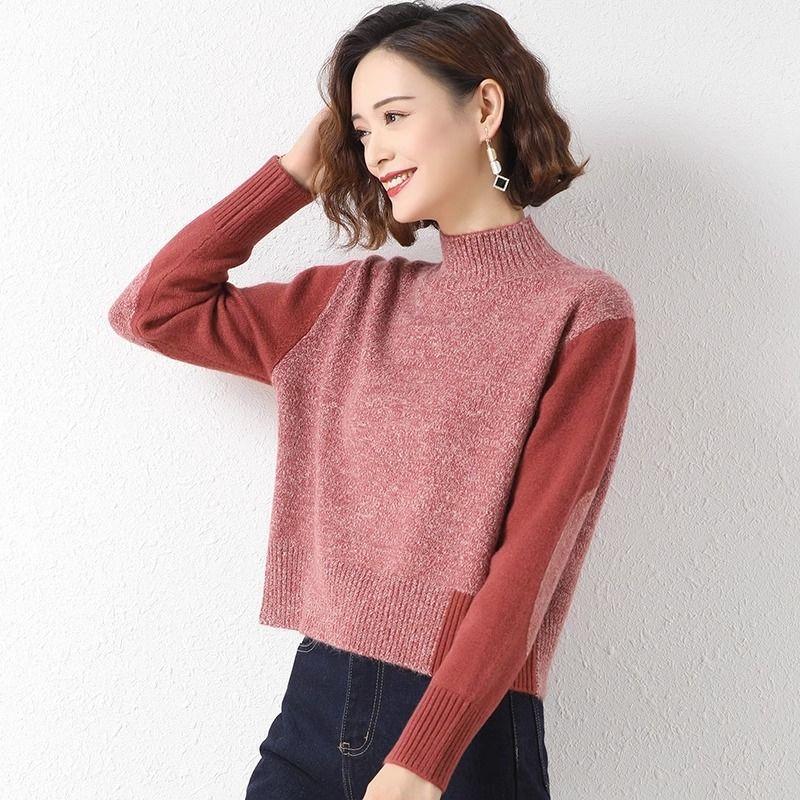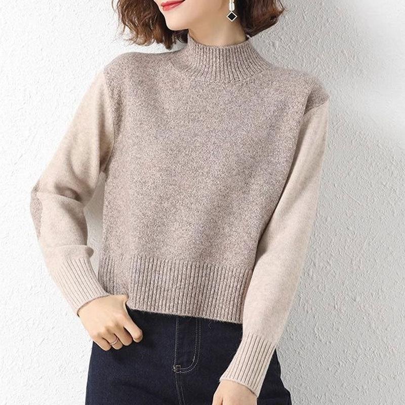 Suéter Corto de Cuello Alto para Mujer 2024 Otoño e Invierno Estilo Relajado Nueva Moda Cintura Alta Cuello Medio Camisa Básica de Invierno