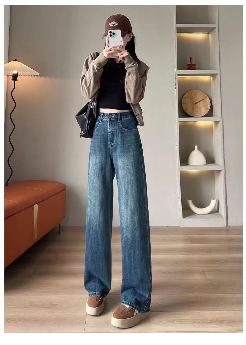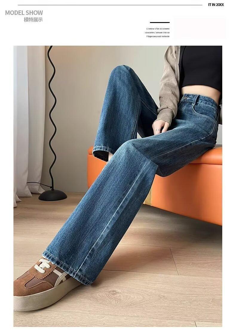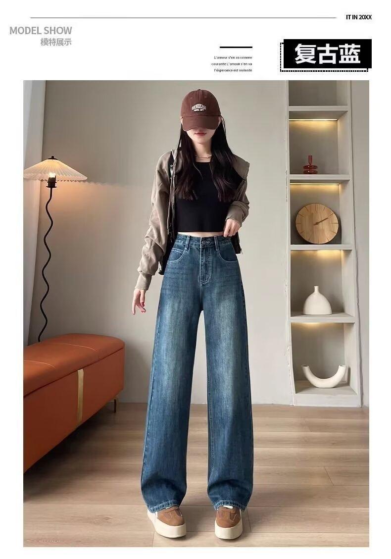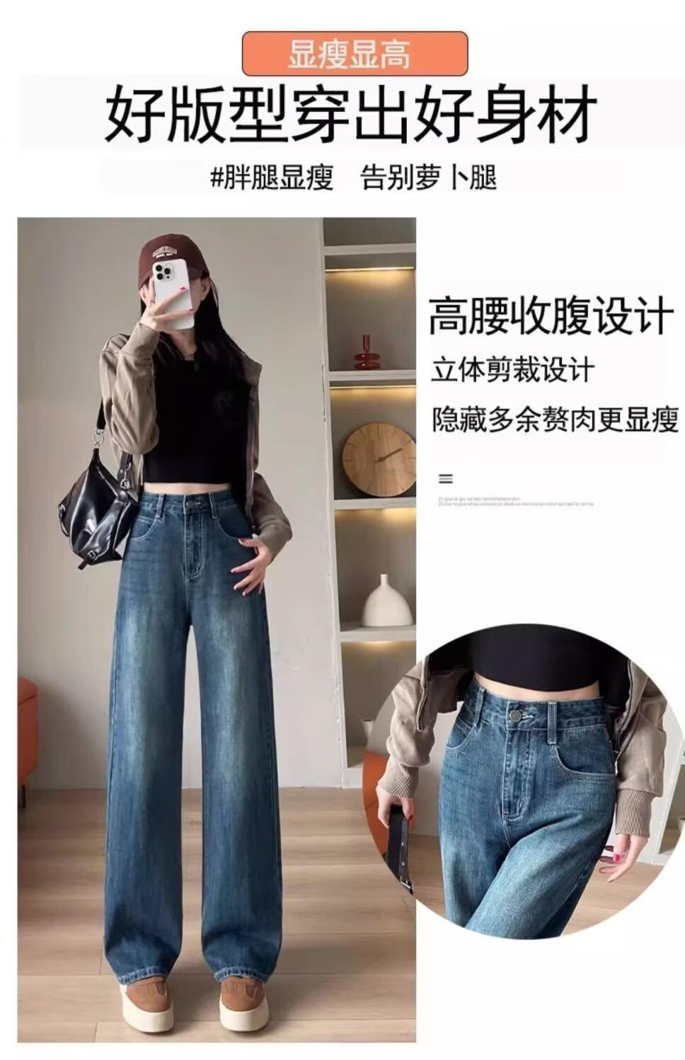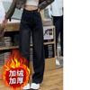 Otoño e Invierno Nuevo Jeans de Pierna Ancha para Mujer Talla Grande Hermana Gordita mm Cuerpo en Forma de Pera Pantalones Adelgazantes Forrados de Felpa Pantalones Rectos