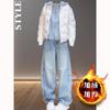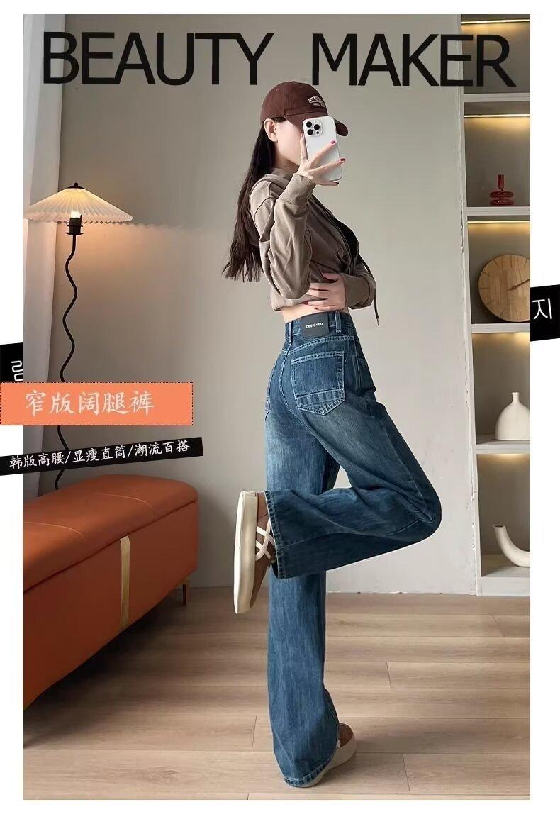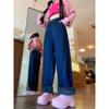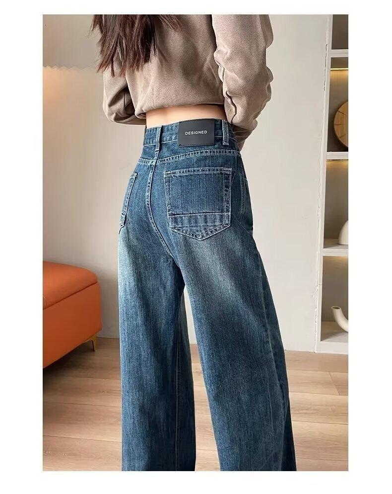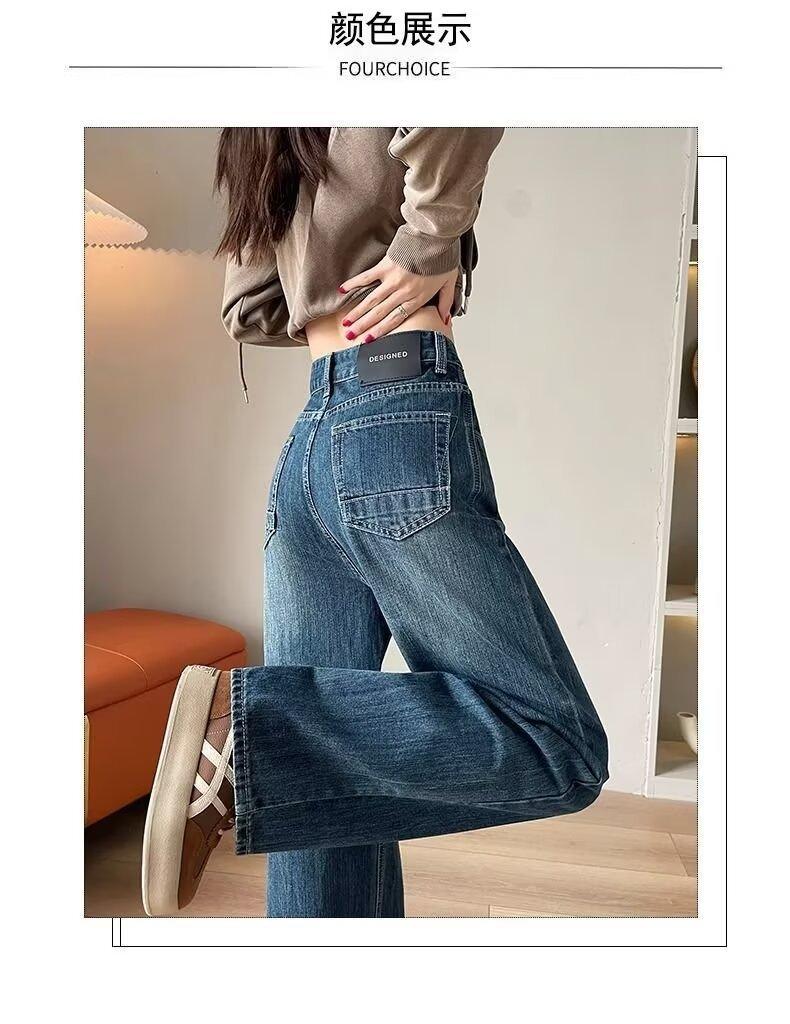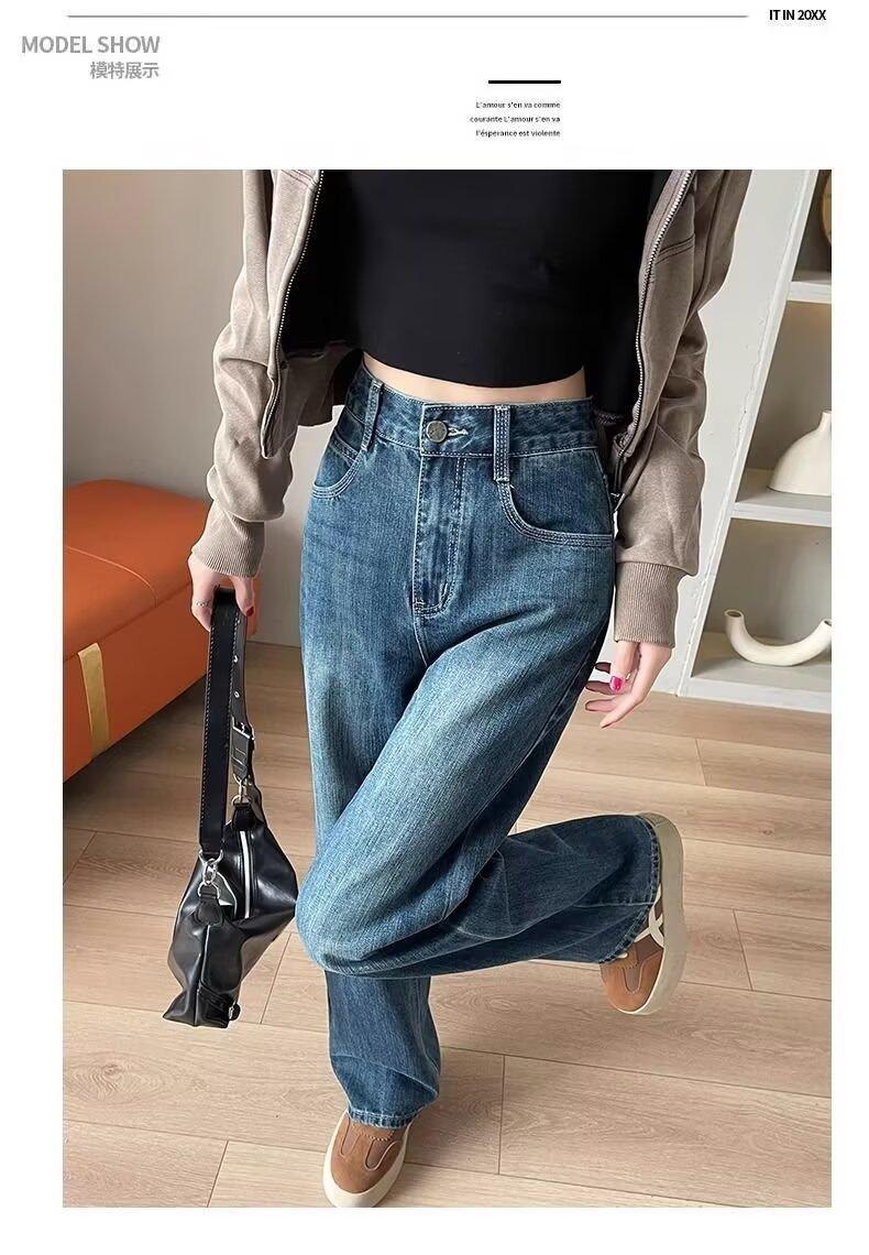 Otoño e Invierno Nuevo Jeans de Pierna Ancha para Mujer Talla Grande Hermana Gordita mm Cuerpo en Forma de Pera Pantalones Adelgazantes Forrados de Felpa Pantalones Rectos