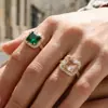 Anillo de Diamante Cuadrado Súper Brillante Popular INS Europeo y Americano para Mujer, Diseño Nicho, Cobre Chapado en Oro de 18K, Anillo Abierto, Anillo de Boda