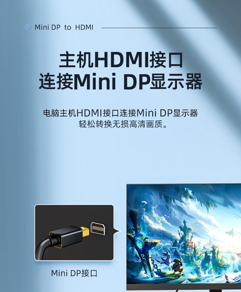 Adaptador de Cable Mini DP a HDMI Cable Mini DP a HDMI 4K Cable de Alta Definición Convertidor Mini DP a HDMI