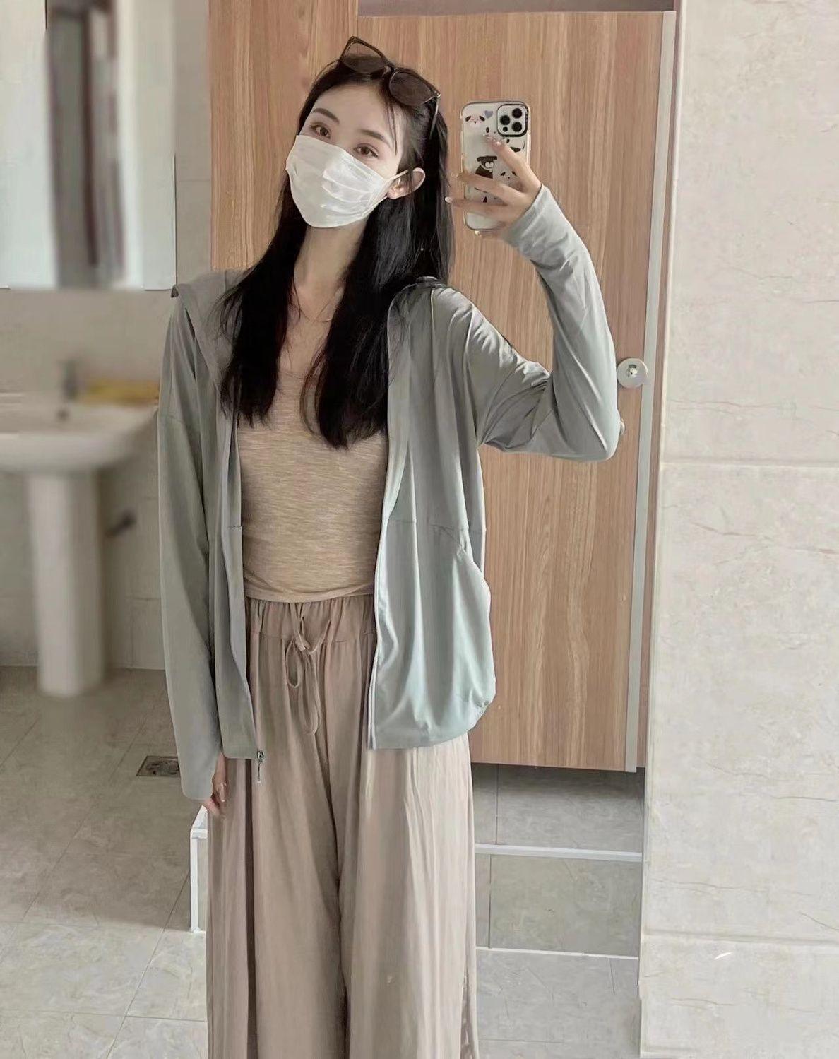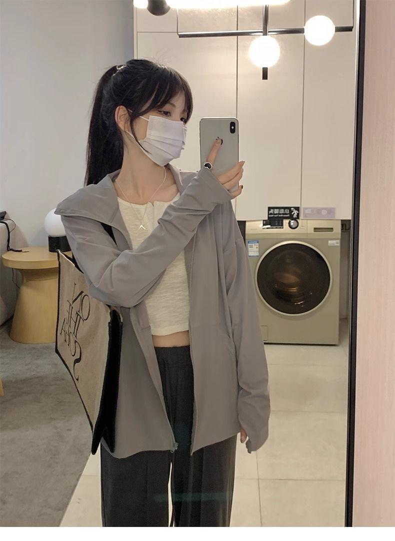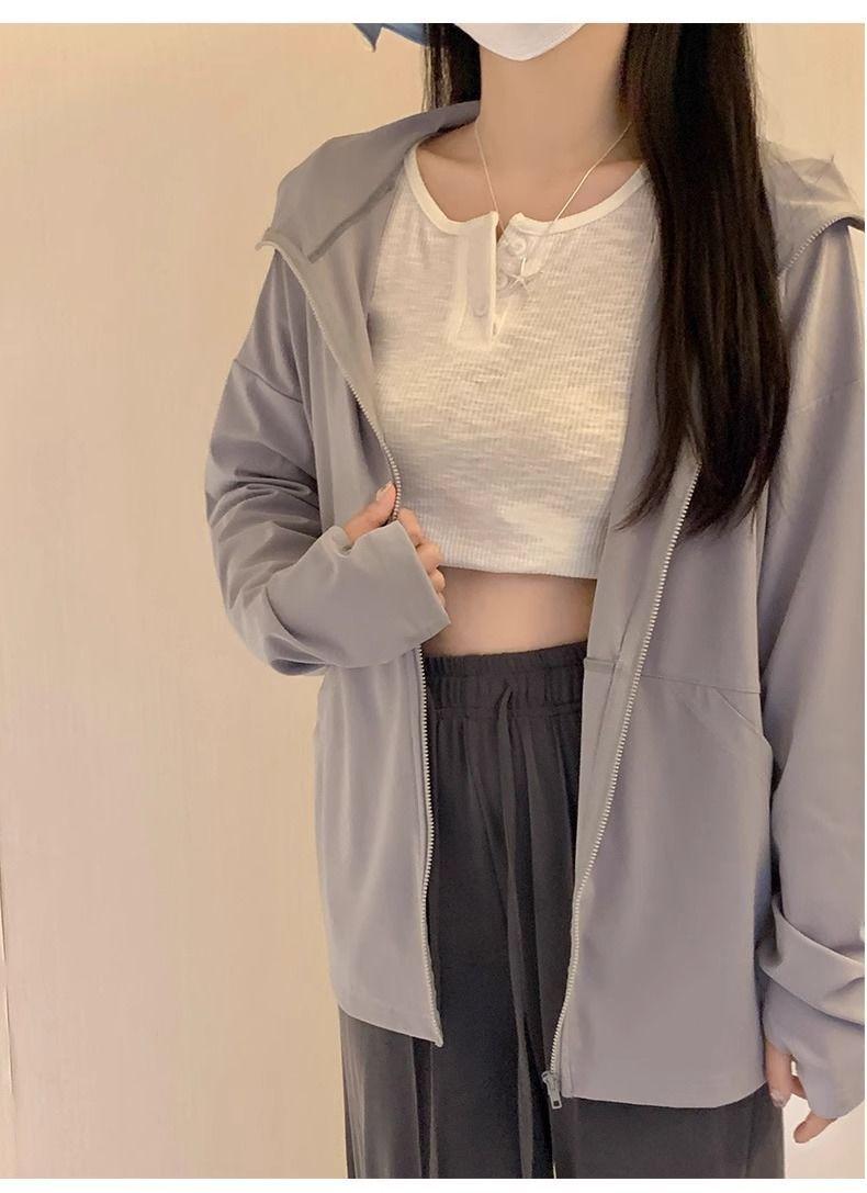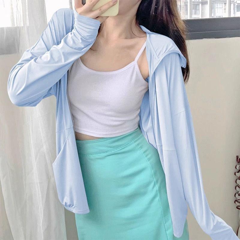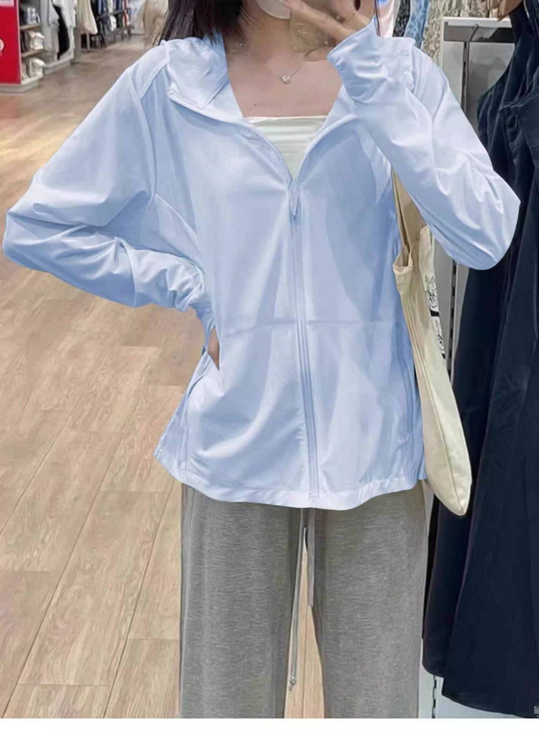 Ropa Deportiva Adelgazante de Seda de Hielo para Verano con Protección Solar para Mujer, Chaqueta Ligera para Exterior Anti-UV Transpirable Fresca Ropa Protectora Solar