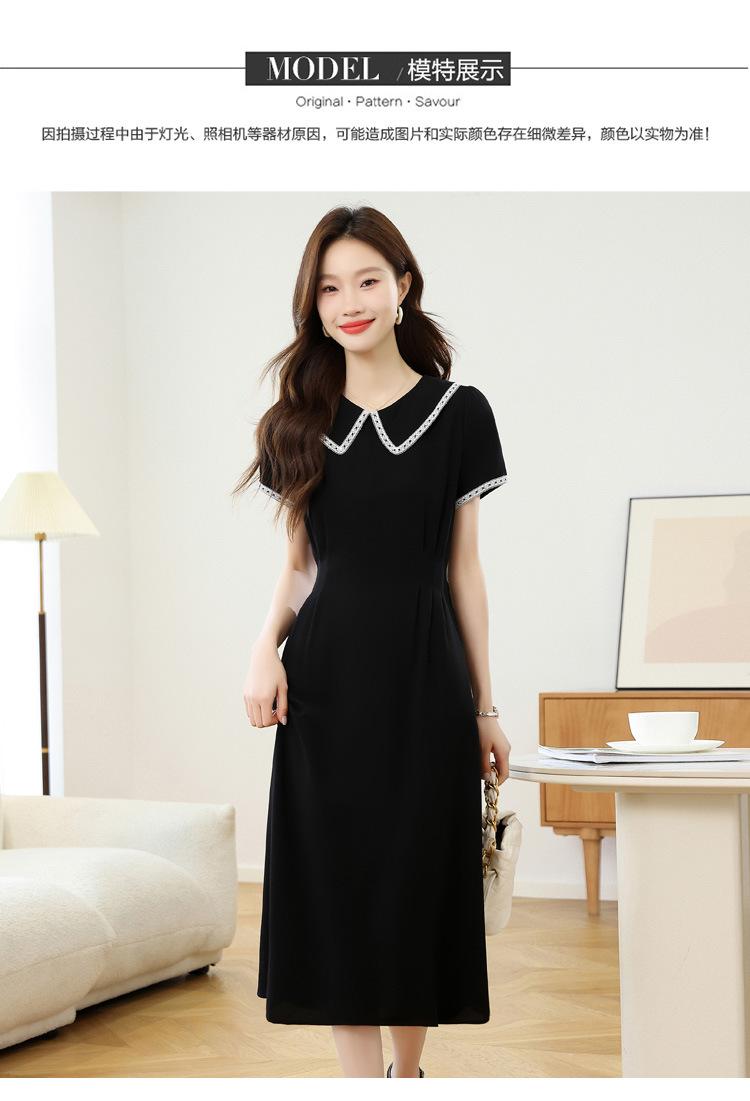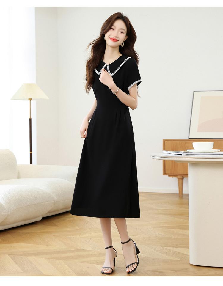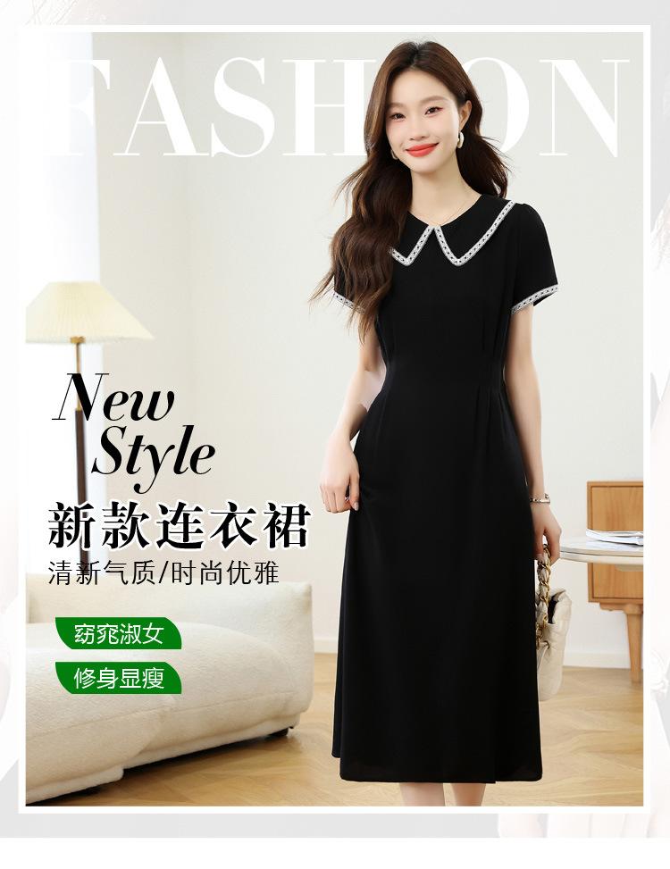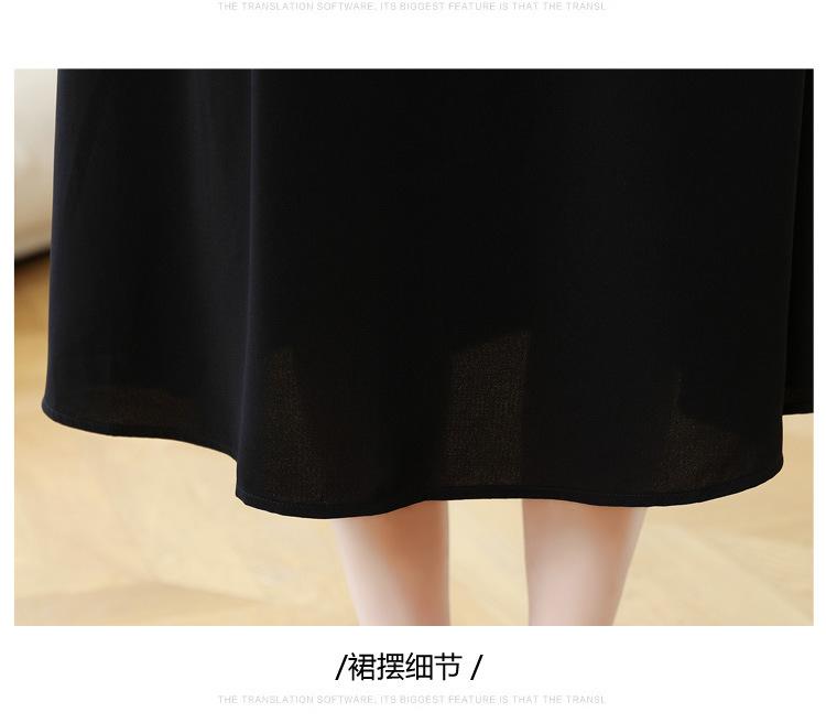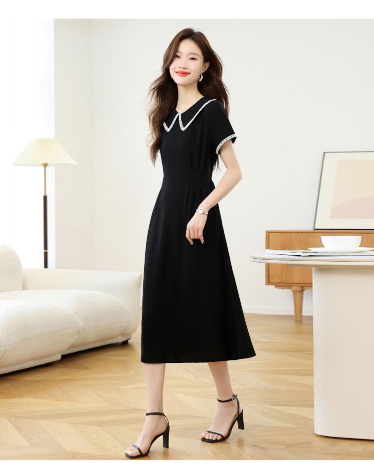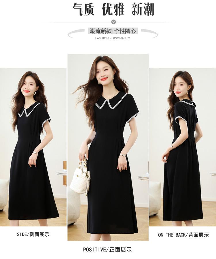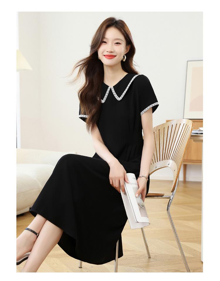 Elegante vestido negro con cuello de muñeca para mujer, verano 2025, nuevo estilo francés, adelgazante, retro, vestido largo con cintura ceñida