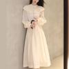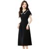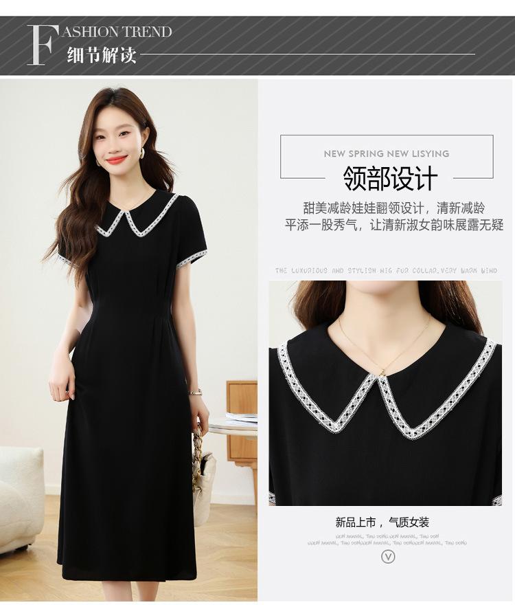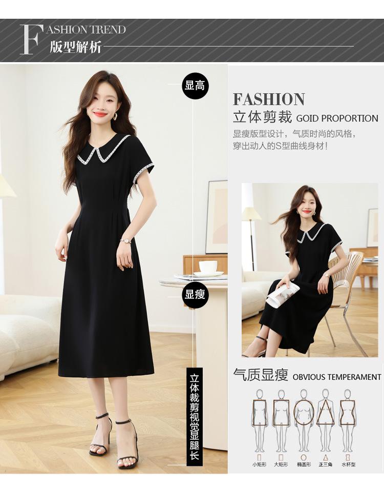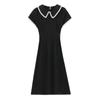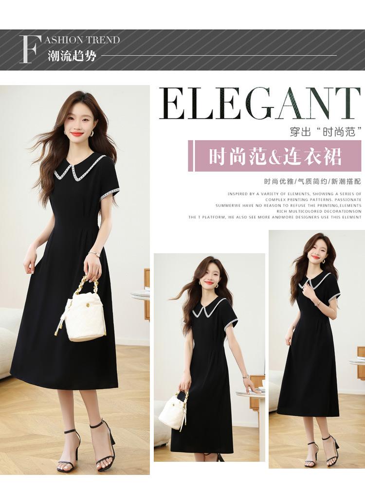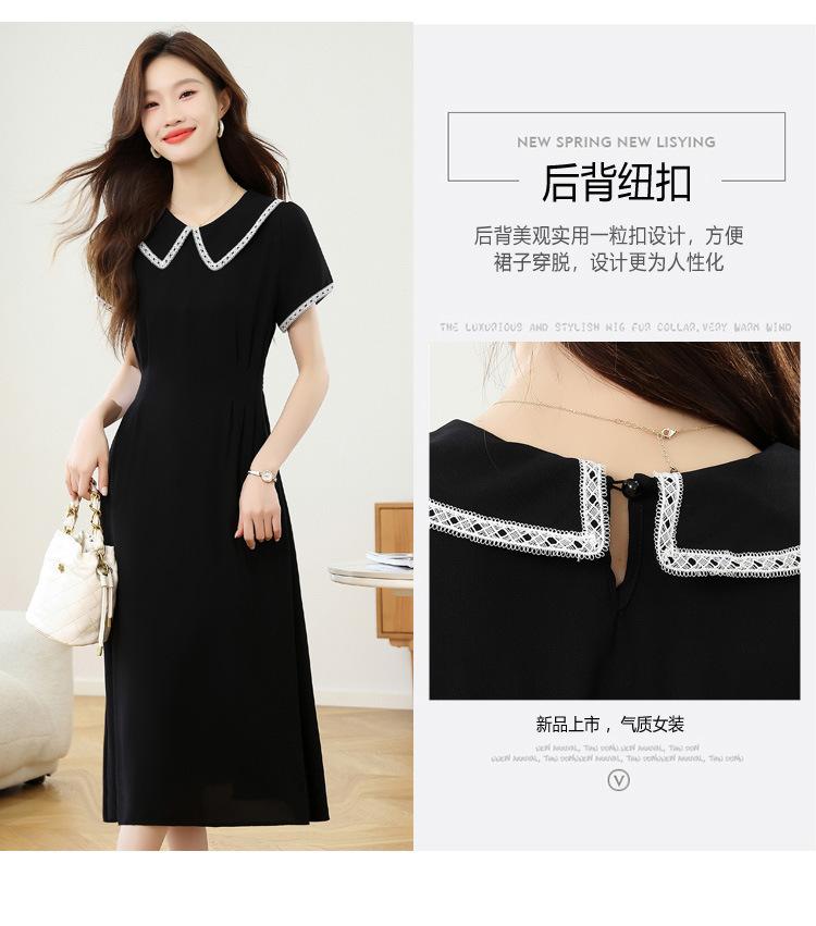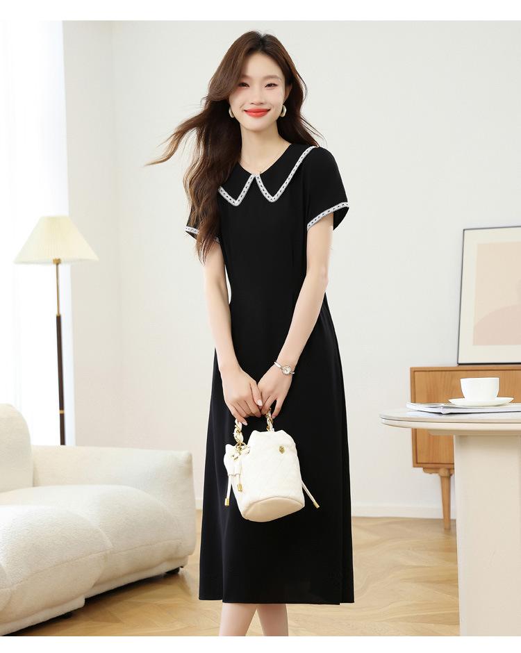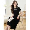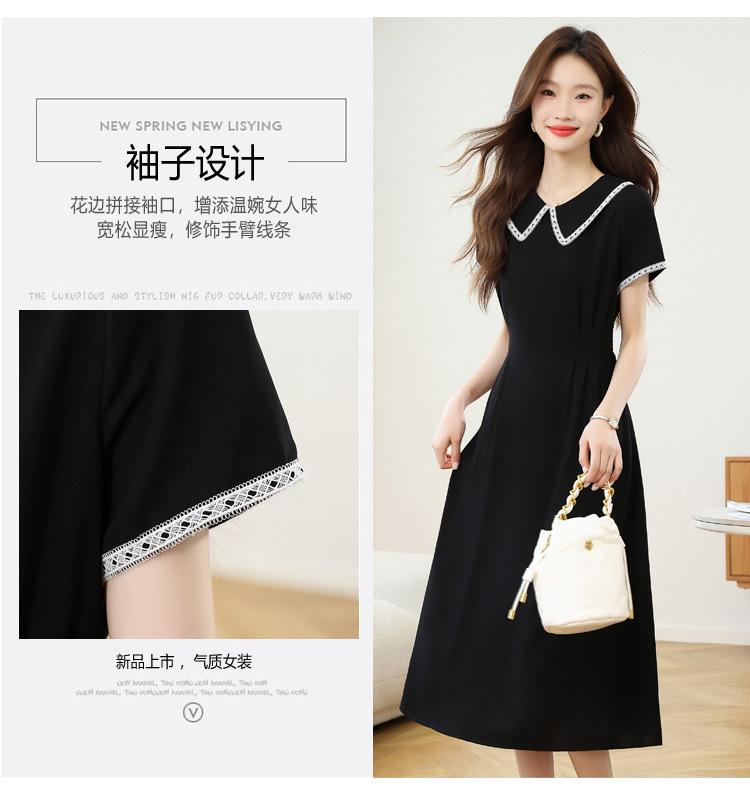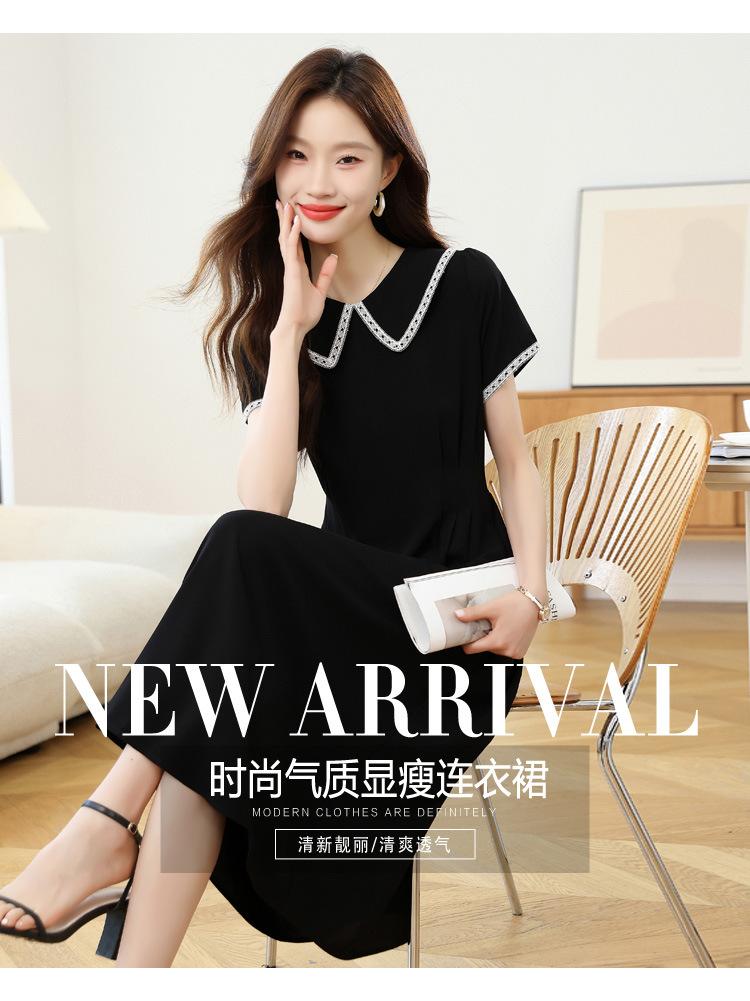 Elegante vestido negro con cuello de muñeca para mujer, verano 2025, nuevo estilo francés, adelgazante, retro, vestido largo con cintura ceñida