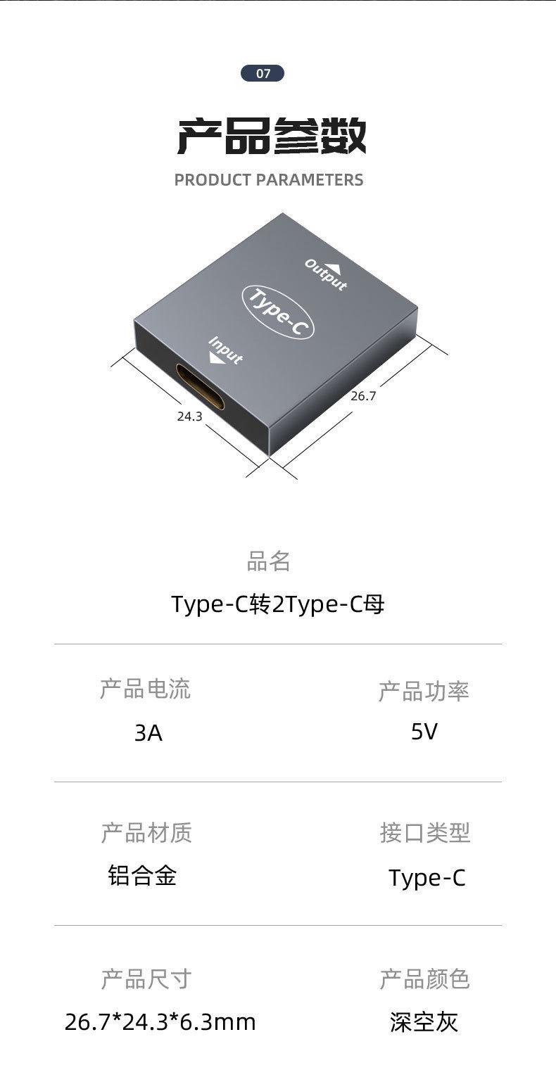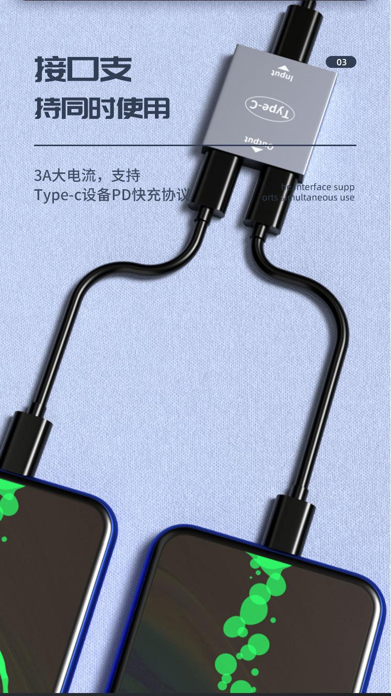 Adaptador USB tipo C hembra uno a dos, extensor de adaptador de doble puerto USB C, cable de datos de carga de doble cabezal de C hembra a A hembra