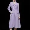 Otoño e Invierno Nuevo Estilo para Mujer Elegante Gris Azul Tweed Traje Adelgazante de Cintura Vestido Falda Larga