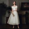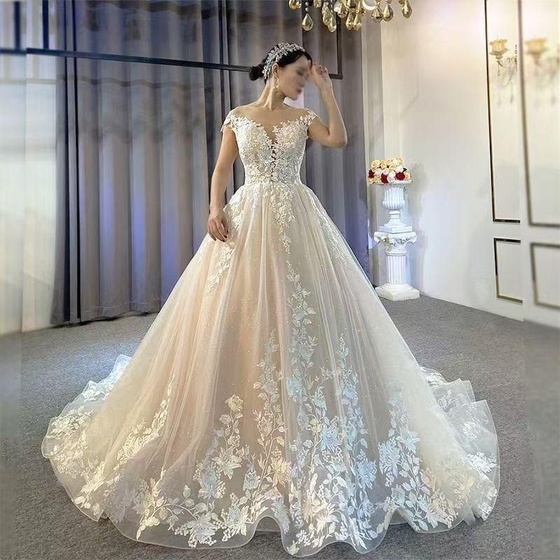 Vestido de Novia Principal Estilo Francés 2025 Nuevo Estilo Temperamento Mori Encaje Blanco Escote en V Profundo Súper Hada Sueño Vestido de Princesa