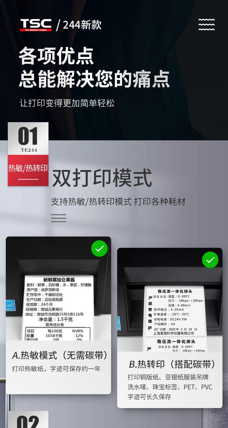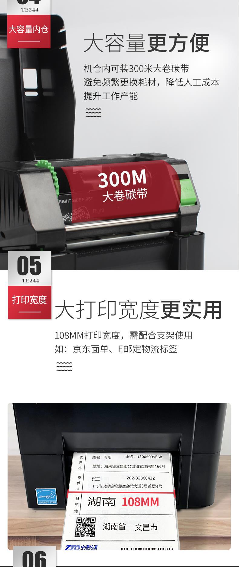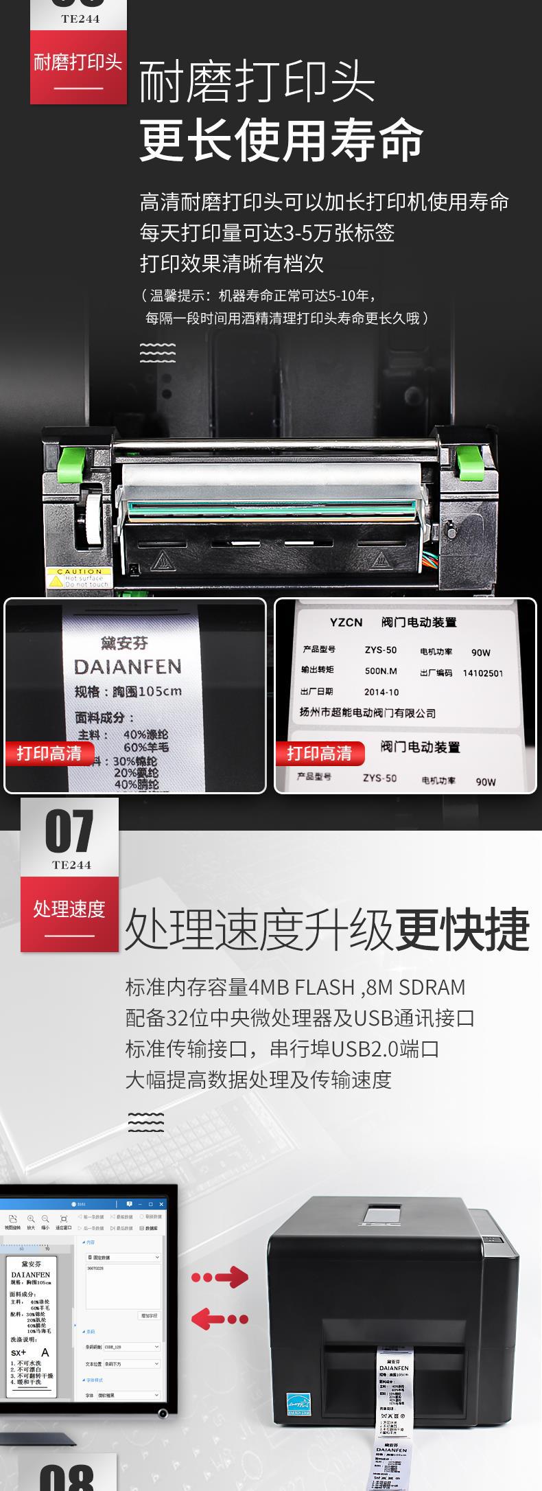 Impresora de etiquetas de cinta de carbono TSC TE 244 344 342 etiqueta de ropa marca de lavado certificado máquina de código de barras