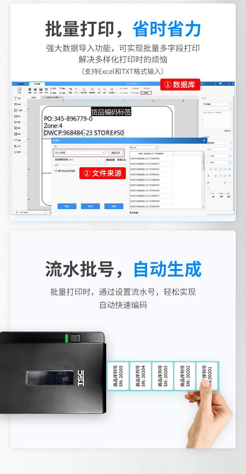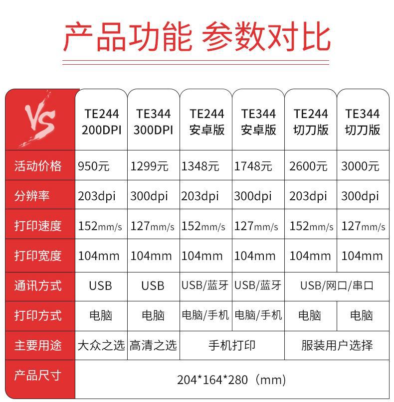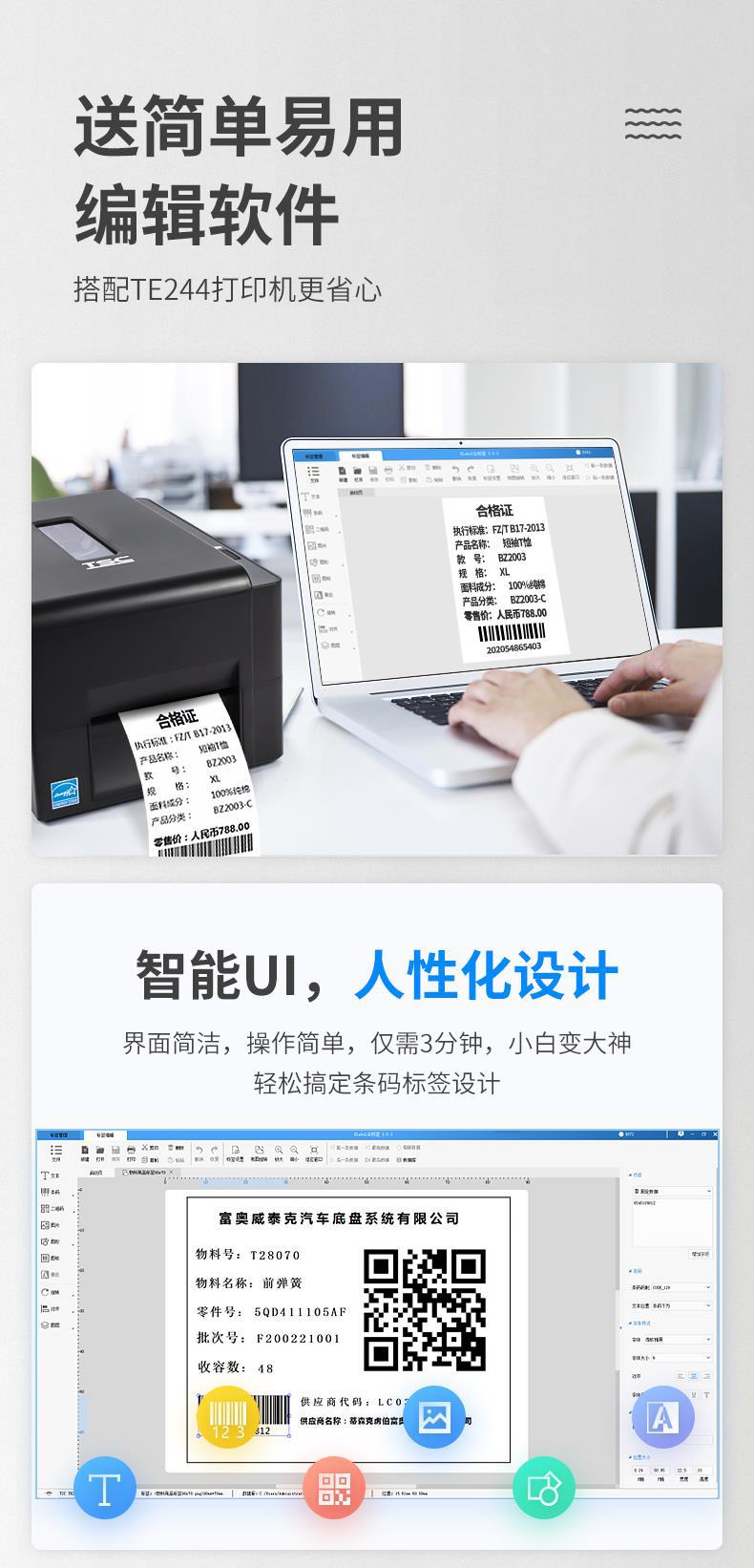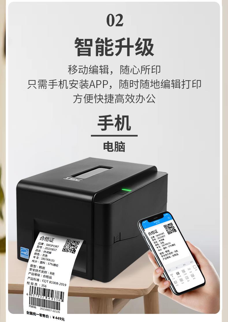 Impresora de etiquetas de cinta de carbono TSC TE 244 344 342 etiqueta de ropa marca de lavado certificado máquina de código de barras