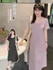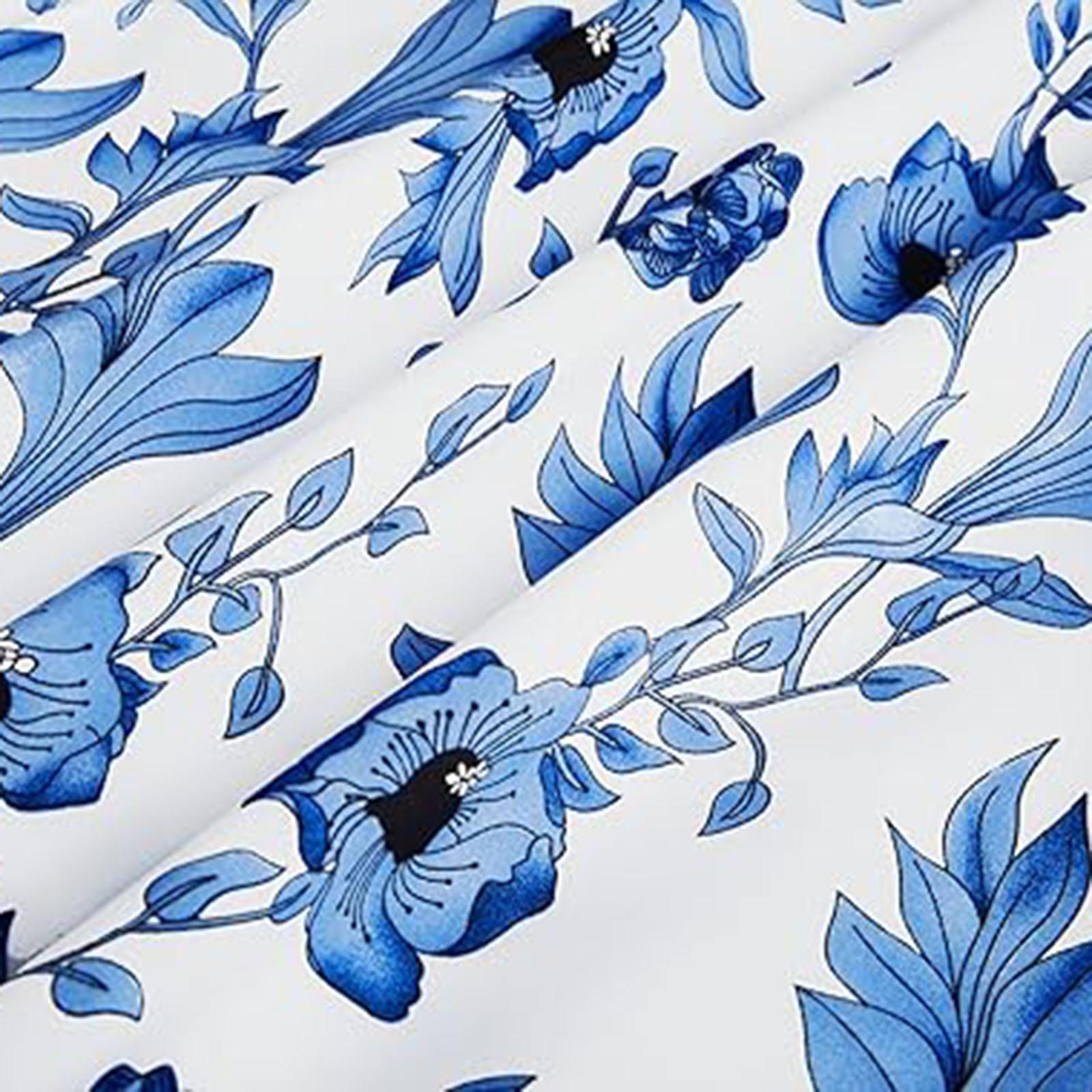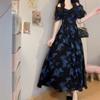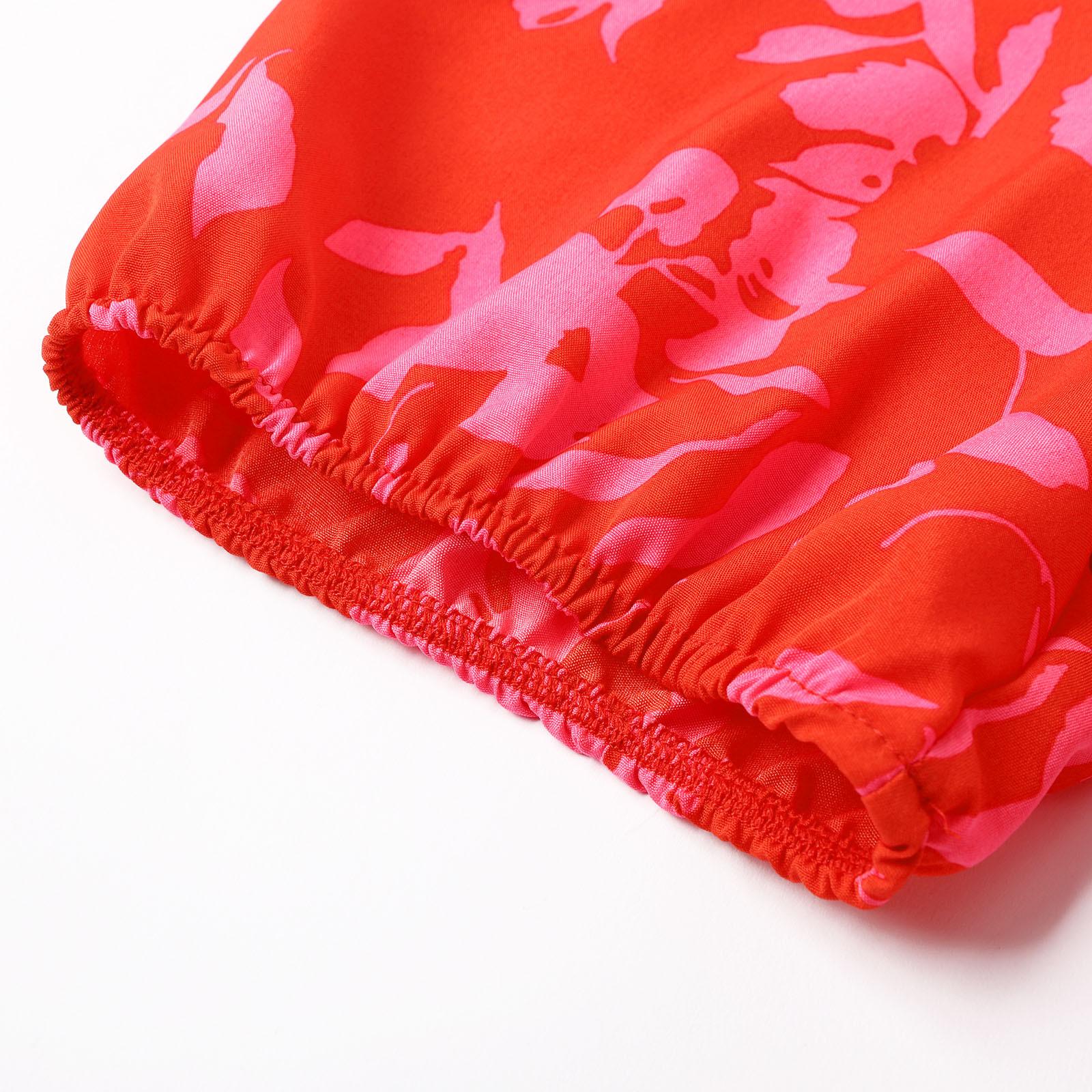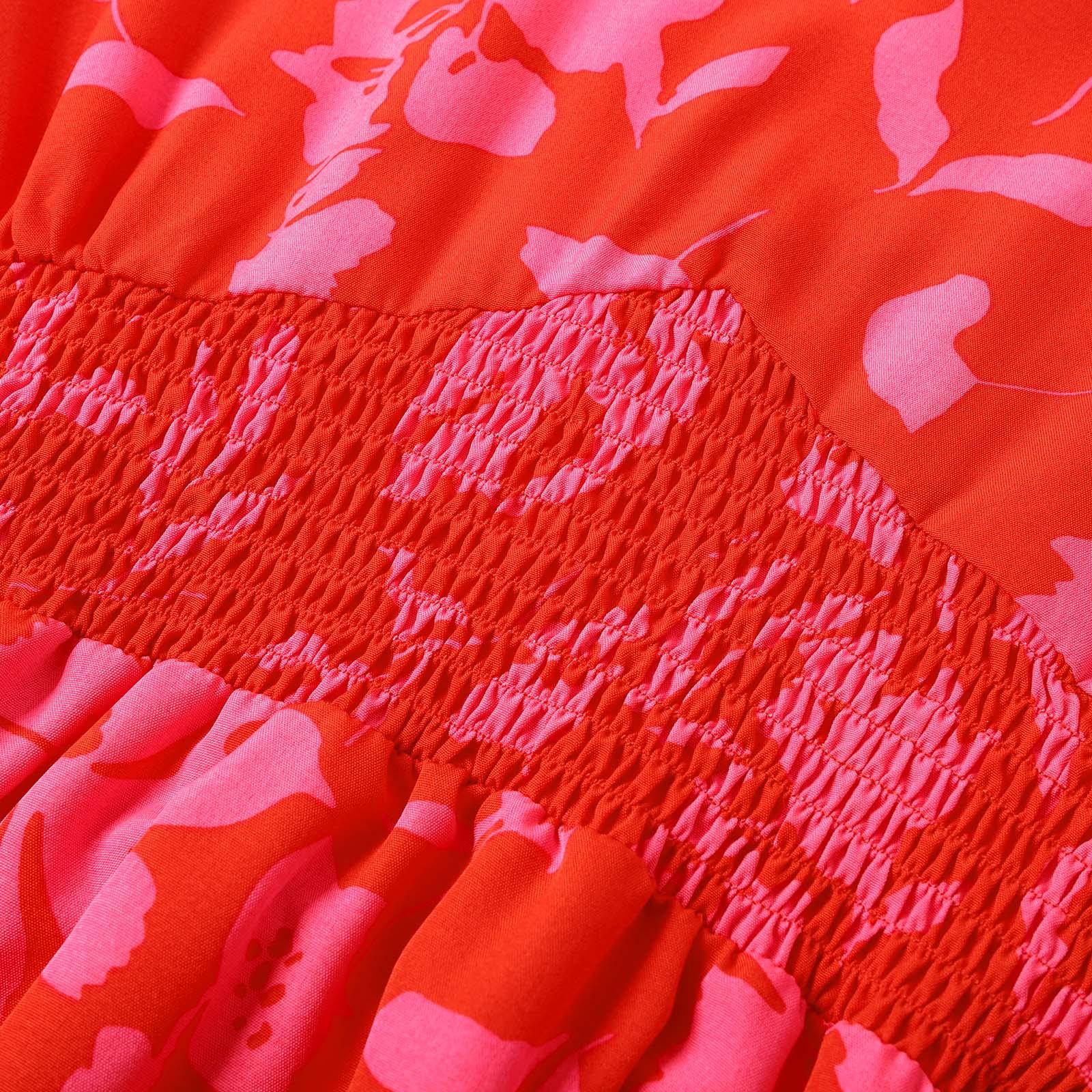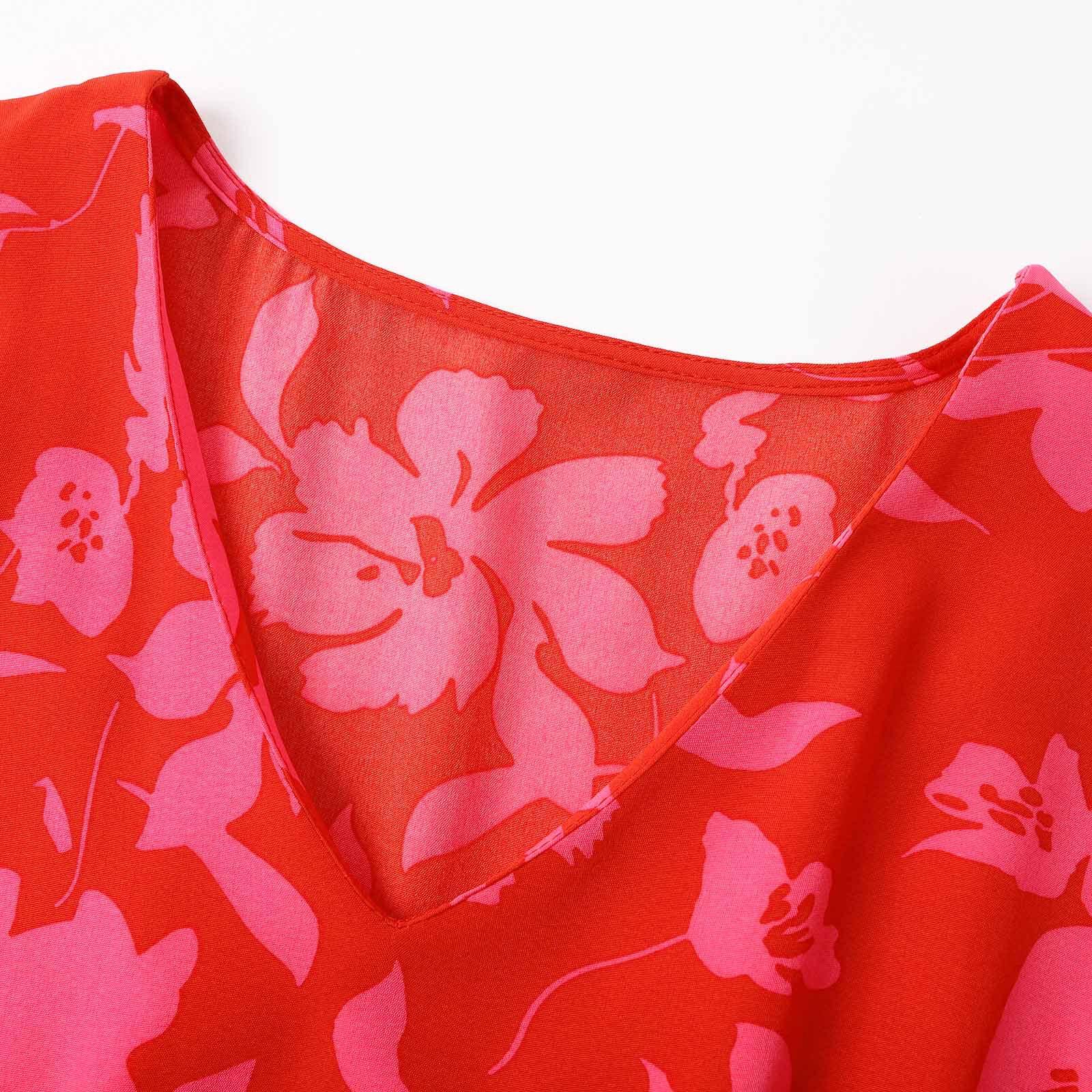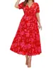 Vestido de línea A con cuello en V para mujer europea y americana de talla grande Cintura alta Adelgazante Manga corta Flor Midi Casual Estampado