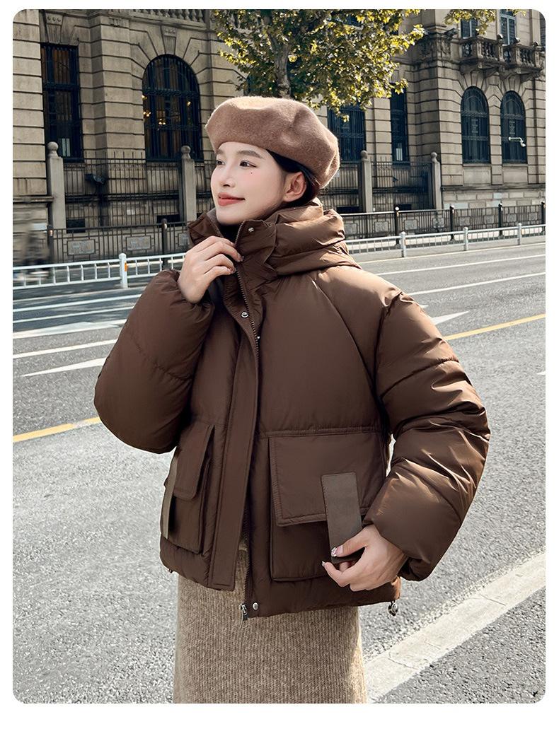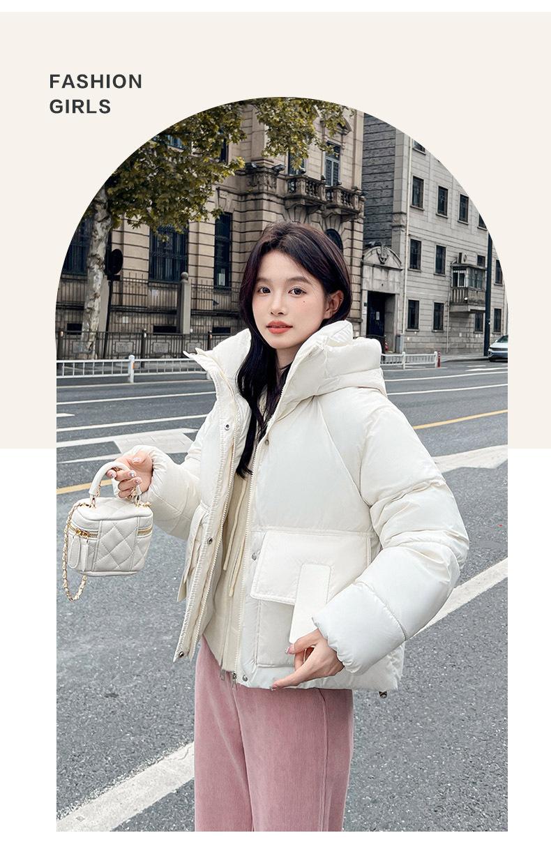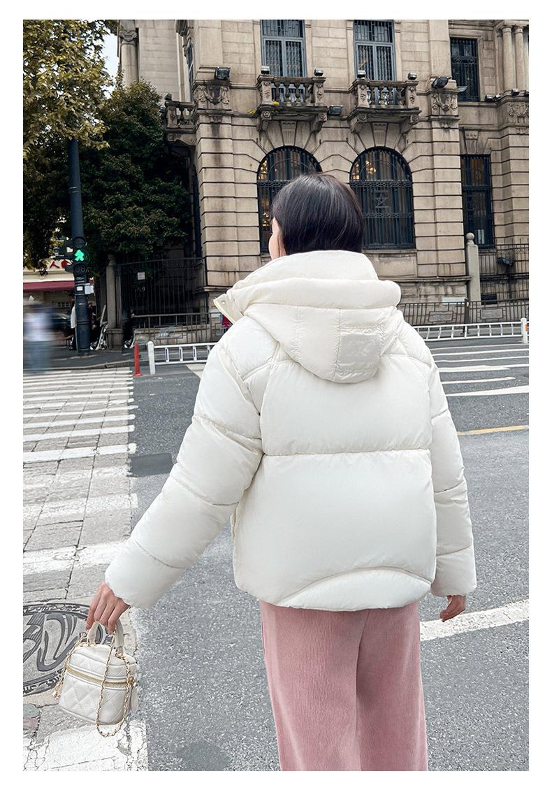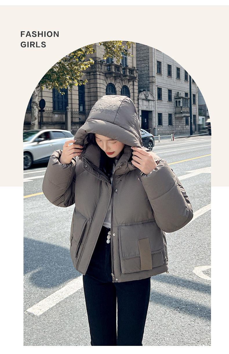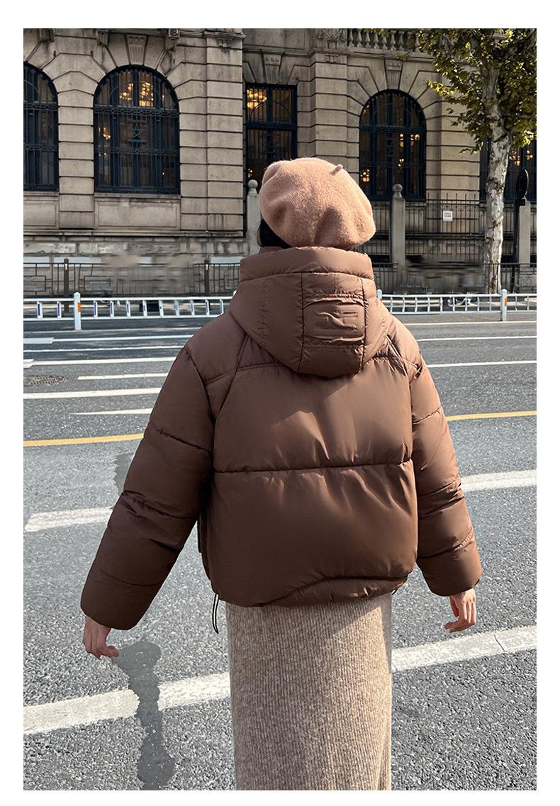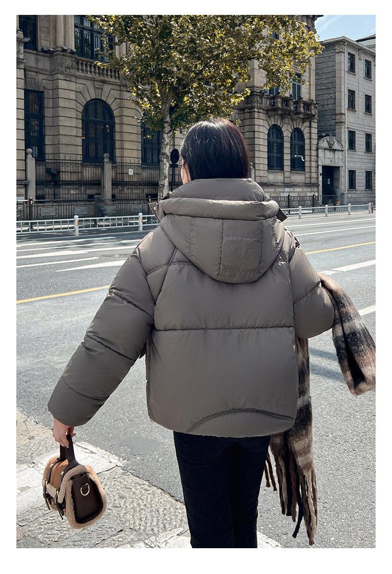 Abrigo Corto Grueso Acolchado de Algodón con Plumón para Mujer Estilo Occidental con Capucha Suelto Delgado Moderno Abrigo Acolchado de Algodón Invierno Cálido Traje de Pan