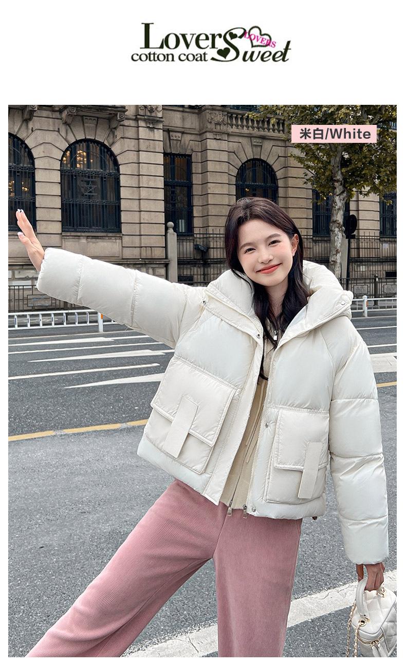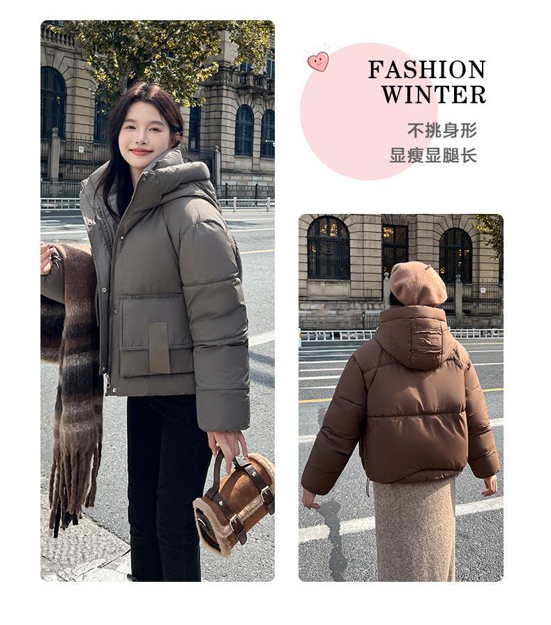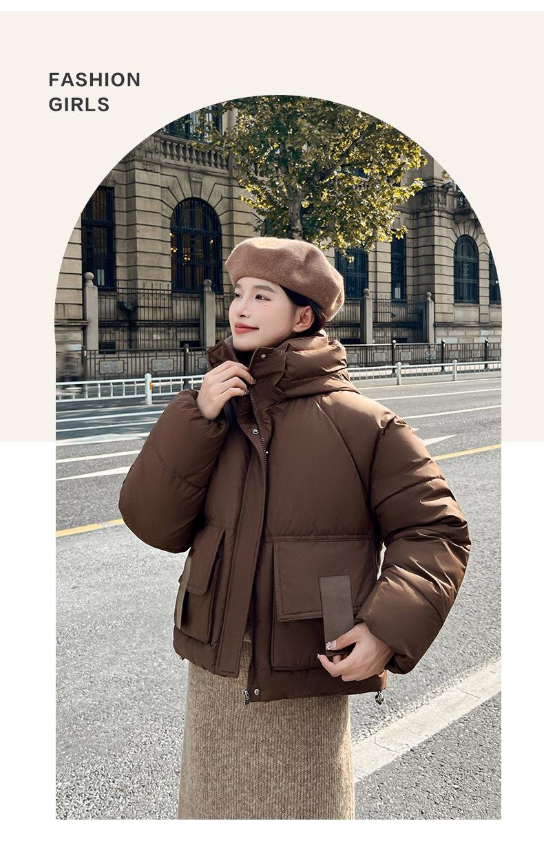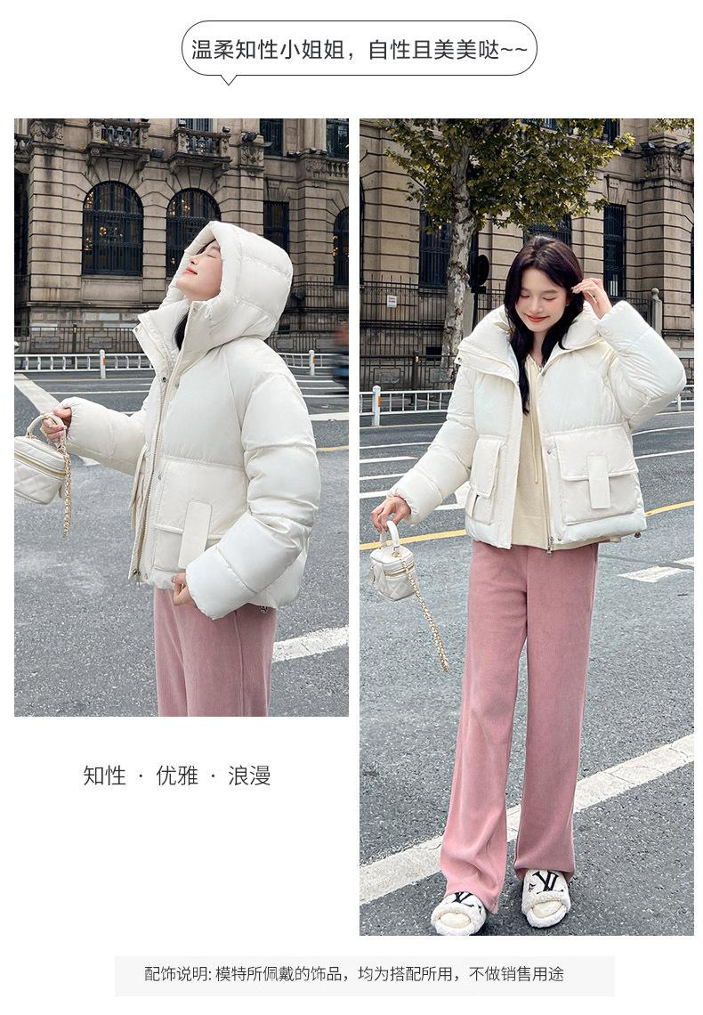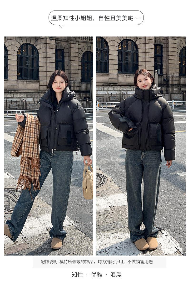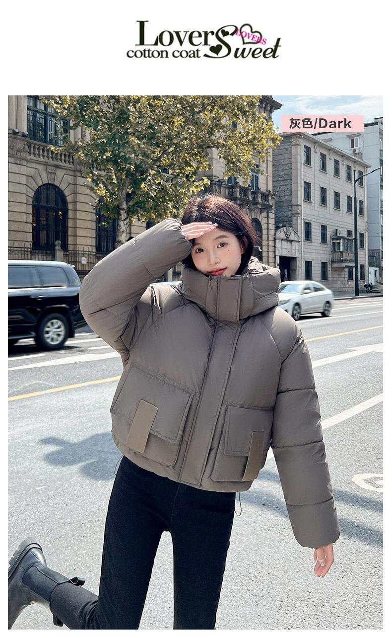 Abrigo Corto Grueso Acolchado de Algodón con Plumón para Mujer Estilo Occidental con Capucha Suelto Delgado Moderno Abrigo Acolchado de Algodón Invierno Cálido Traje de Pan