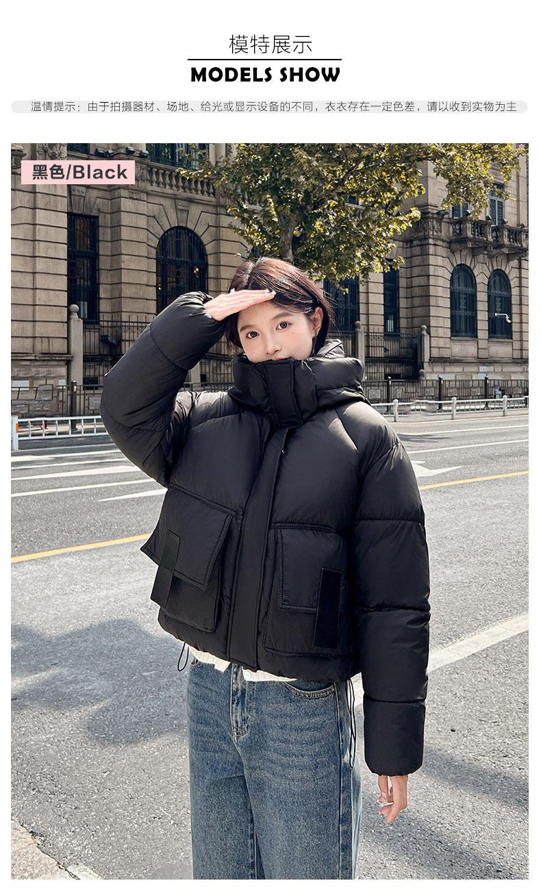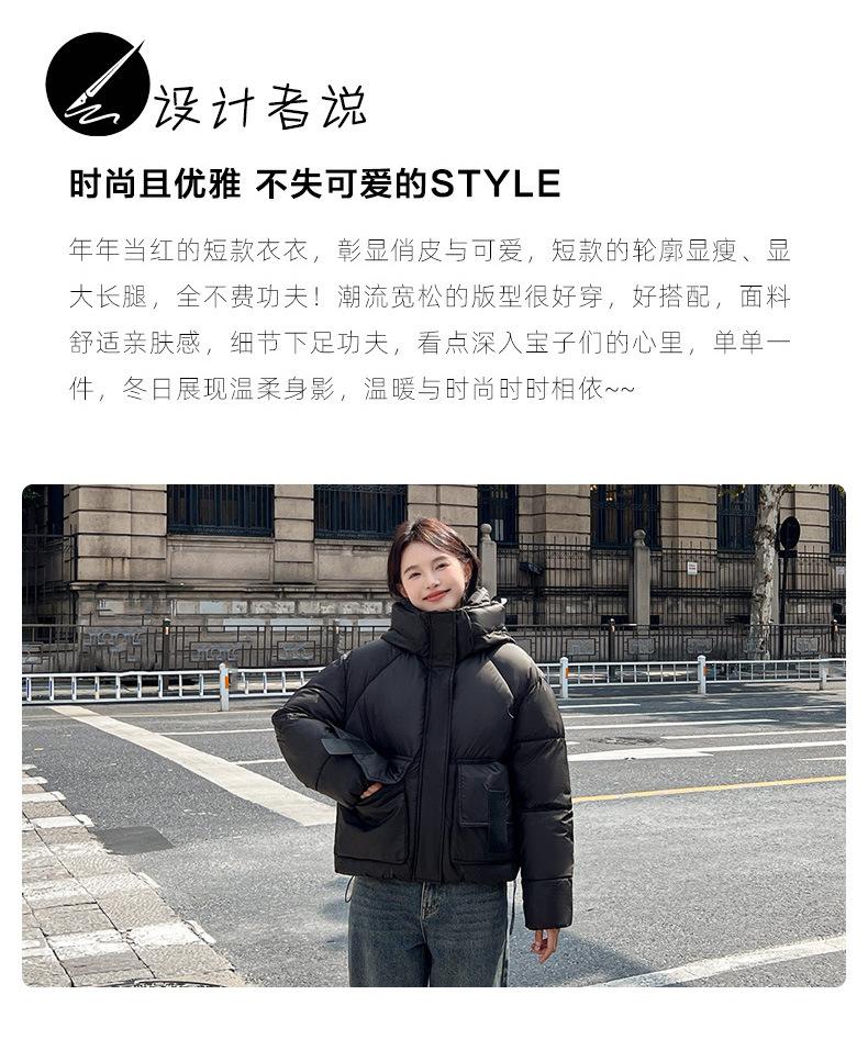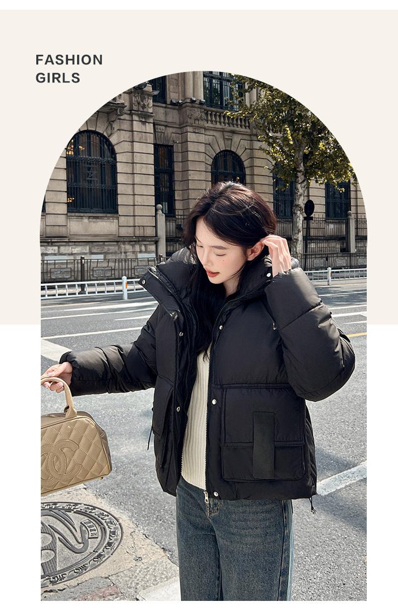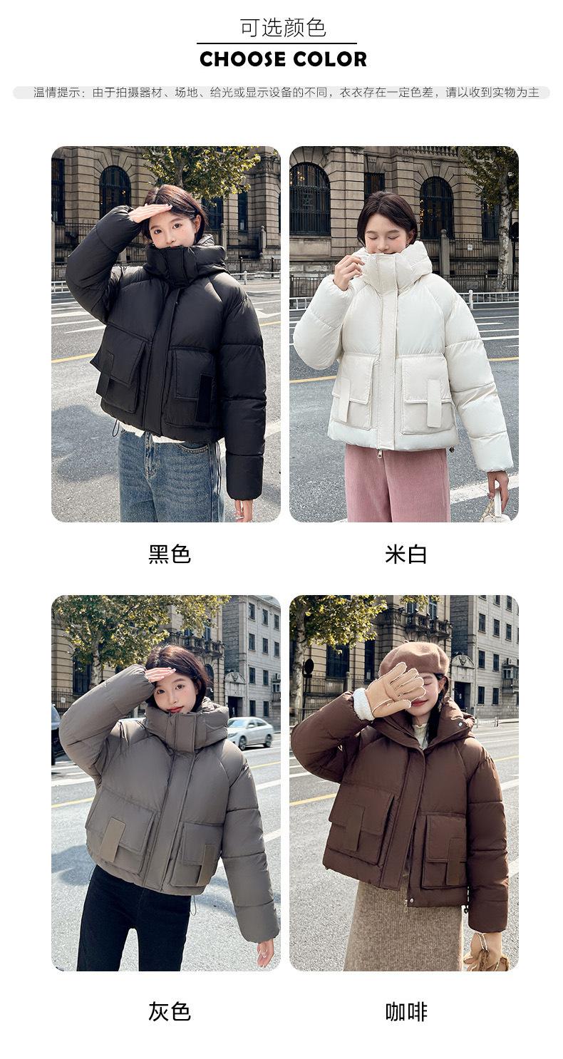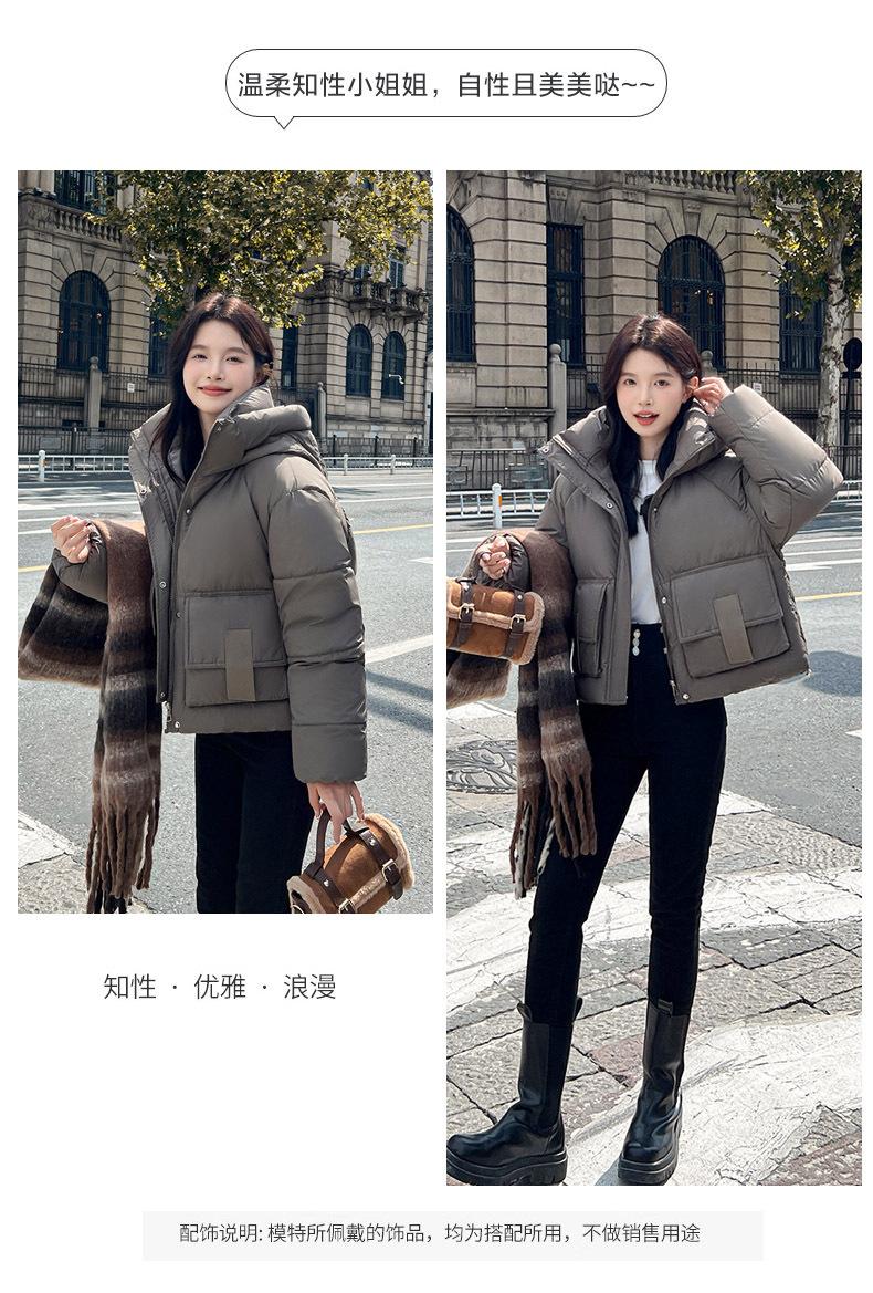 Abrigo Corto Grueso Acolchado de Algodón con Plumón para Mujer Estilo Occidental con Capucha Suelto Delgado Moderno Abrigo Acolchado de Algodón Invierno Cálido Traje de Pan