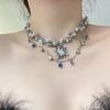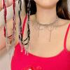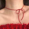 Collar gargantilla con lazo rojo blanco con cuentas de cristal para mujer, dulce, fresco, cadena para clavícula, accesorios de collar de alta gama, moderno