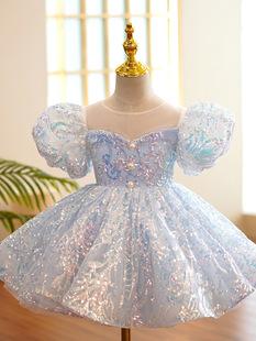Vestido infantil Falda tutú 2022 lentejuela azul disfraz para actuación de piano infantil anfitrión niña de las flores vestido de princesa