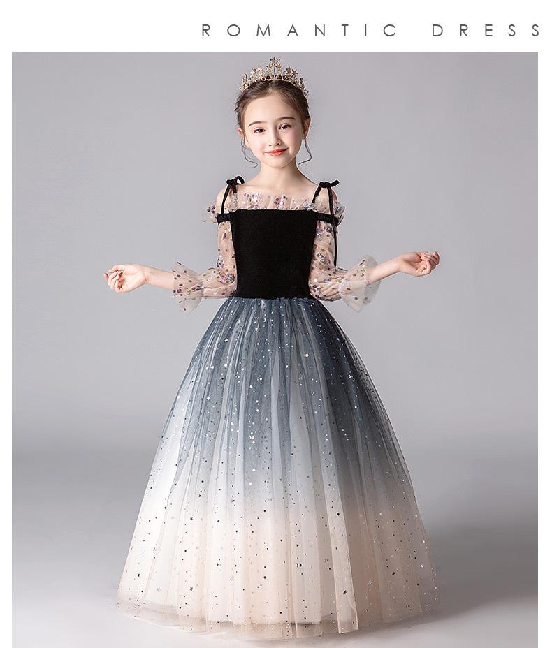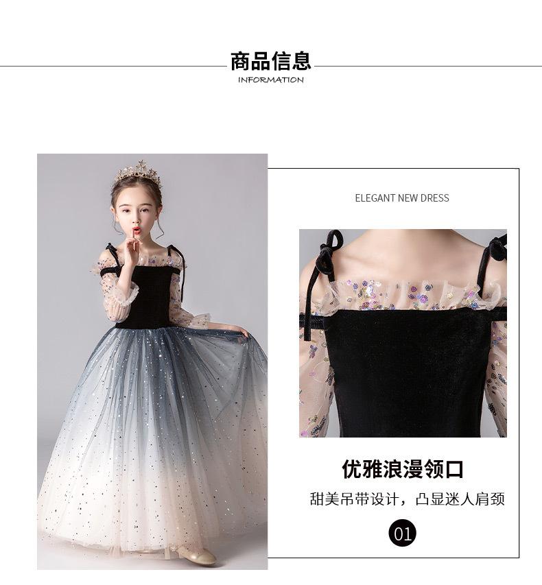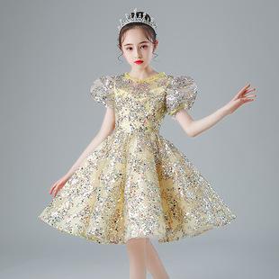 Vestido de niña vestido de princesa nuevo estilo niños presentación de piano anfitrión niña modelo pasarela disfraz lentejuelas