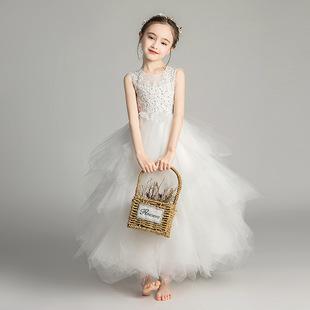 Vestido infantil, vestido de princesa, velo abullonado para niña, vestido de niña de las flores para actuación de piano, vestido de noche para presentadora, desfile de moda occidental