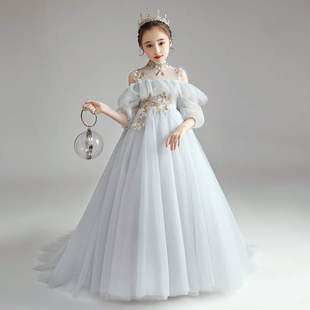 Vestido de niña vestido de princesa 2022 niña cumpleaños pasarela niña de las flores vestido de boda pequeño anfitrión presentación de piano hilo esponjoso
