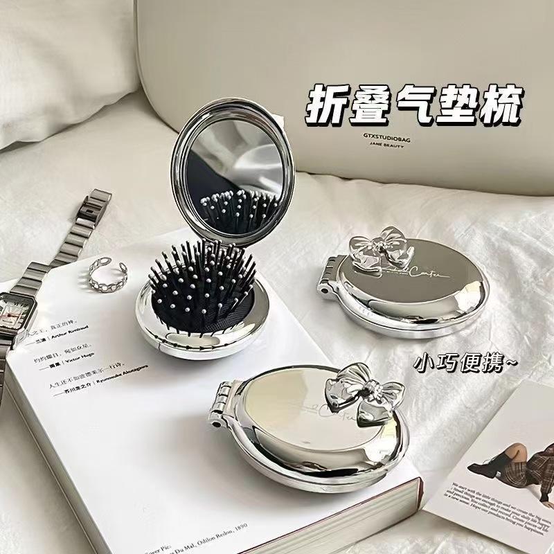 Peine pequeño, peine plegable portátil para mujeres y niños, cojín de aire, masajeador de cabello, mini espejo, peine integrado.