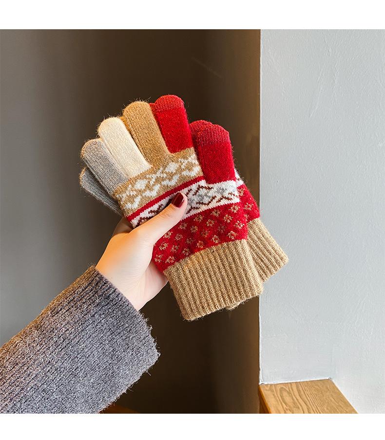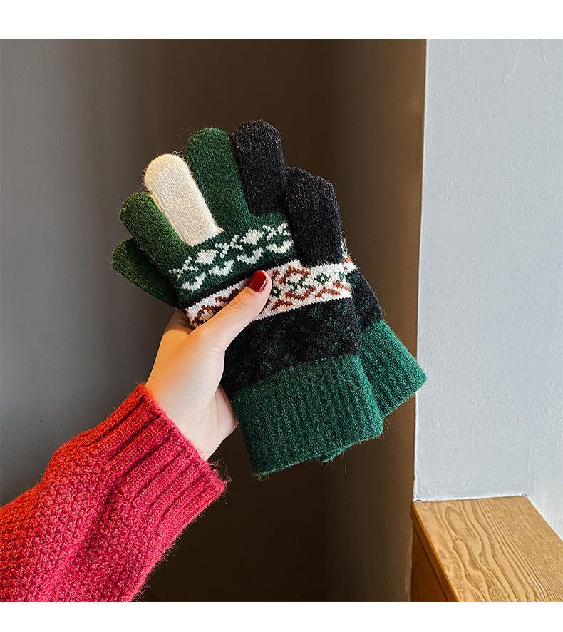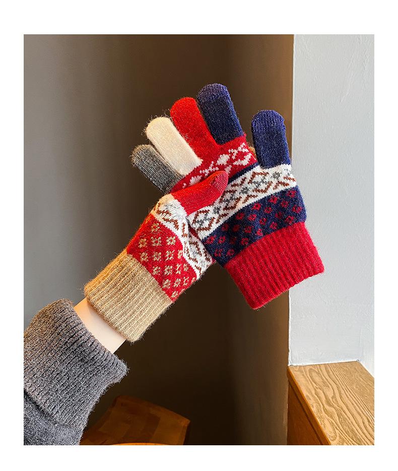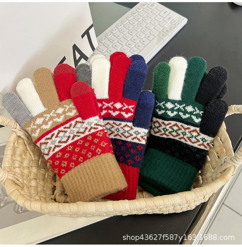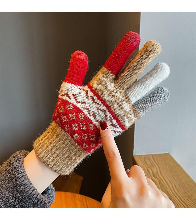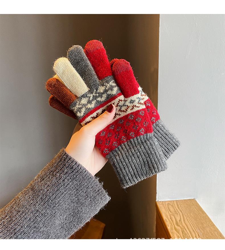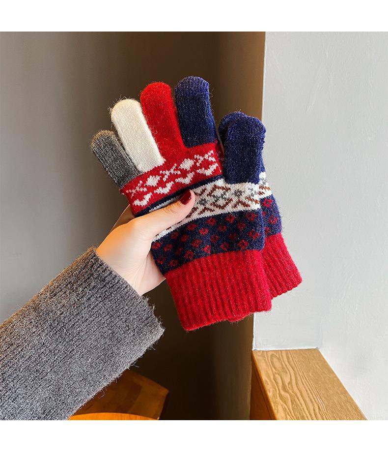 Guantes de punto lana estilo coreano invierno para mujer combinación de colores cálidos estudiante para montar cinco dedos dedo a prueba de frío pantalla táctil mayoreo