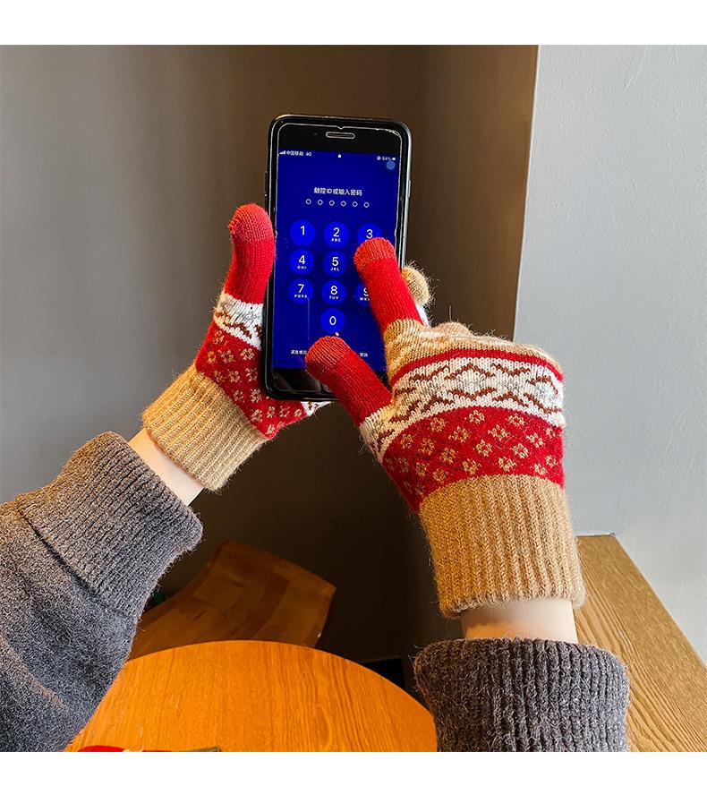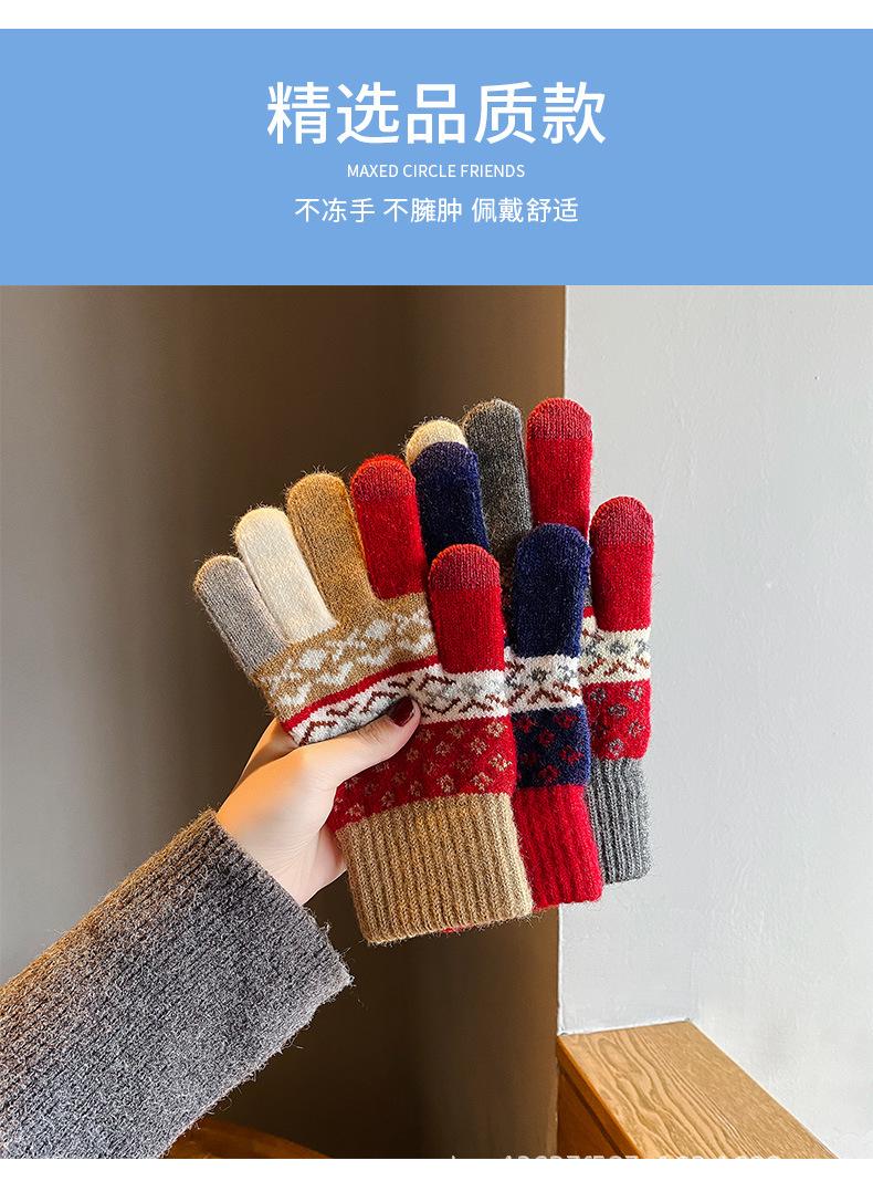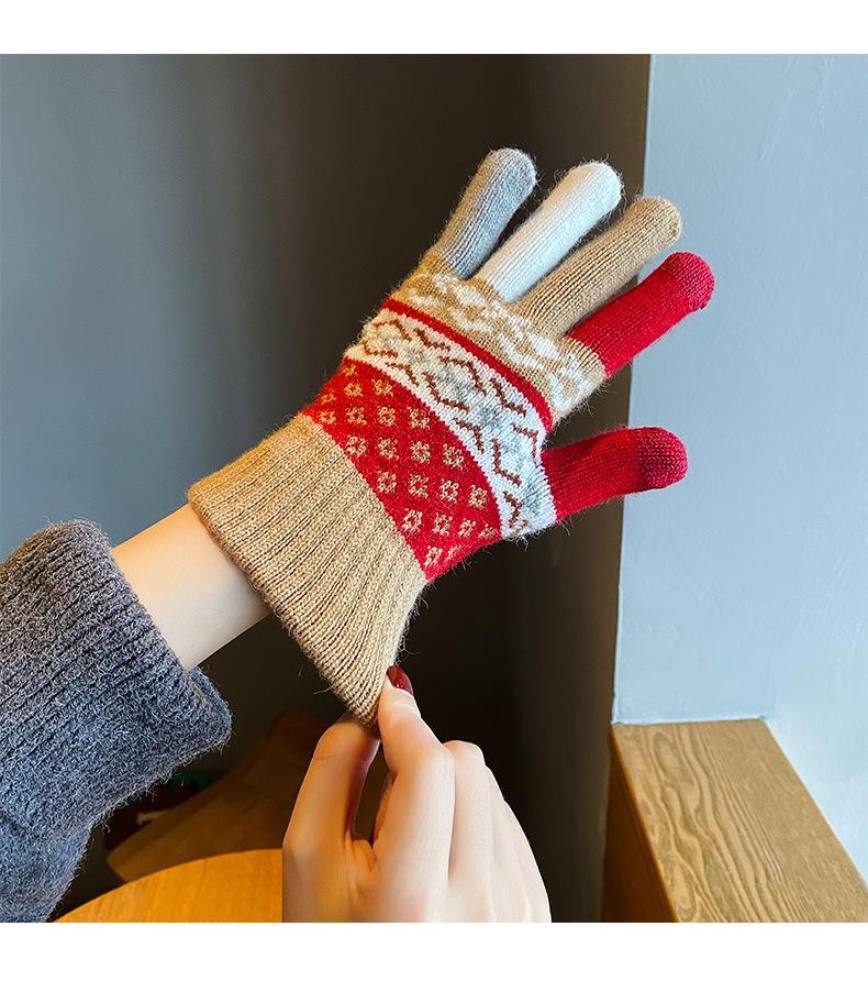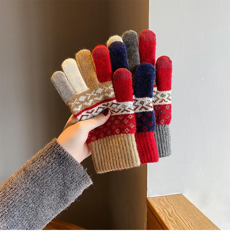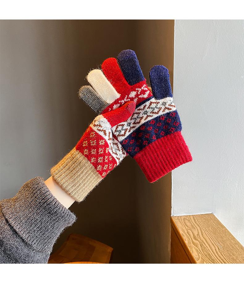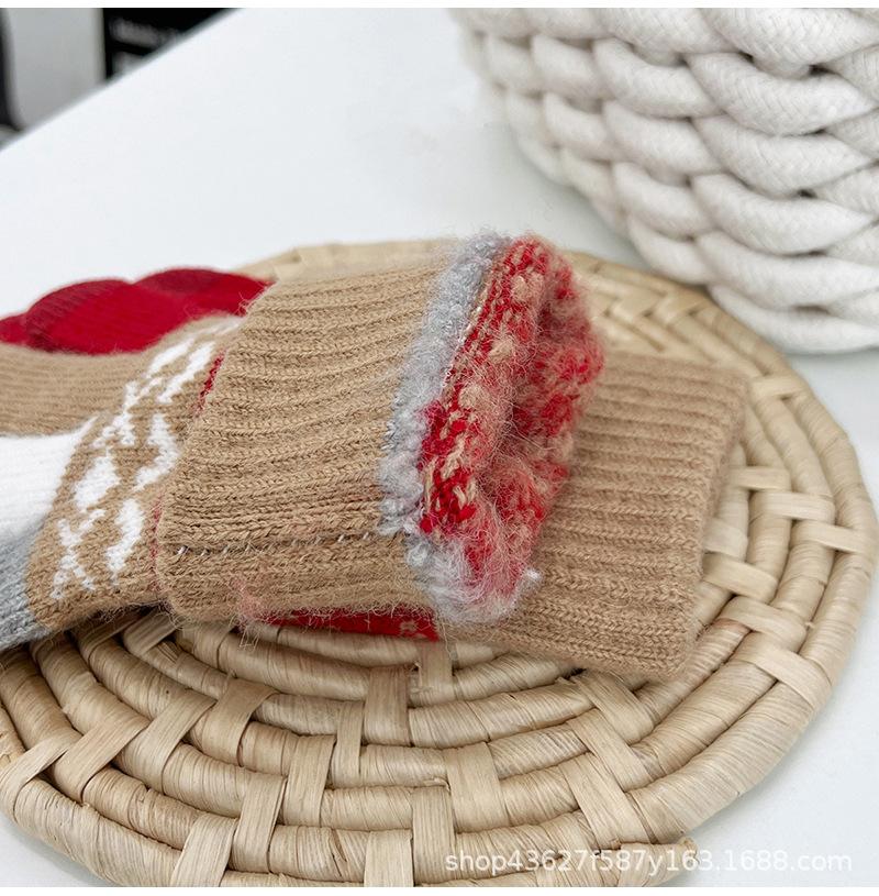 Guantes de punto lana estilo coreano invierno para mujer combinación de colores cálidos estudiante para montar cinco dedos dedo a prueba de frío pantalla táctil mayoreo