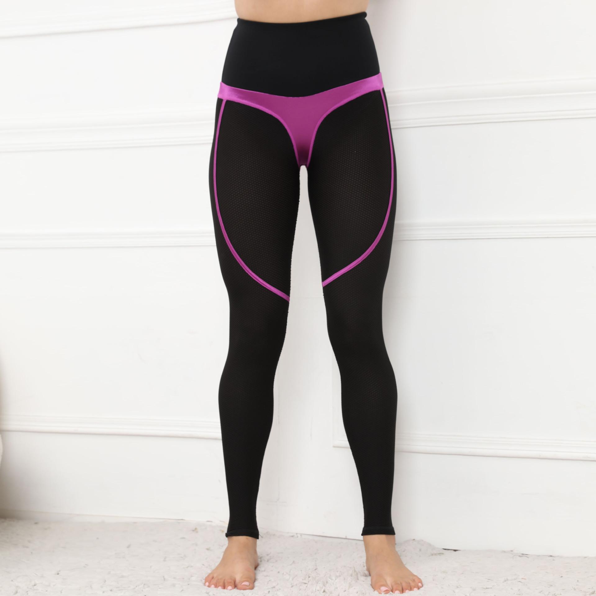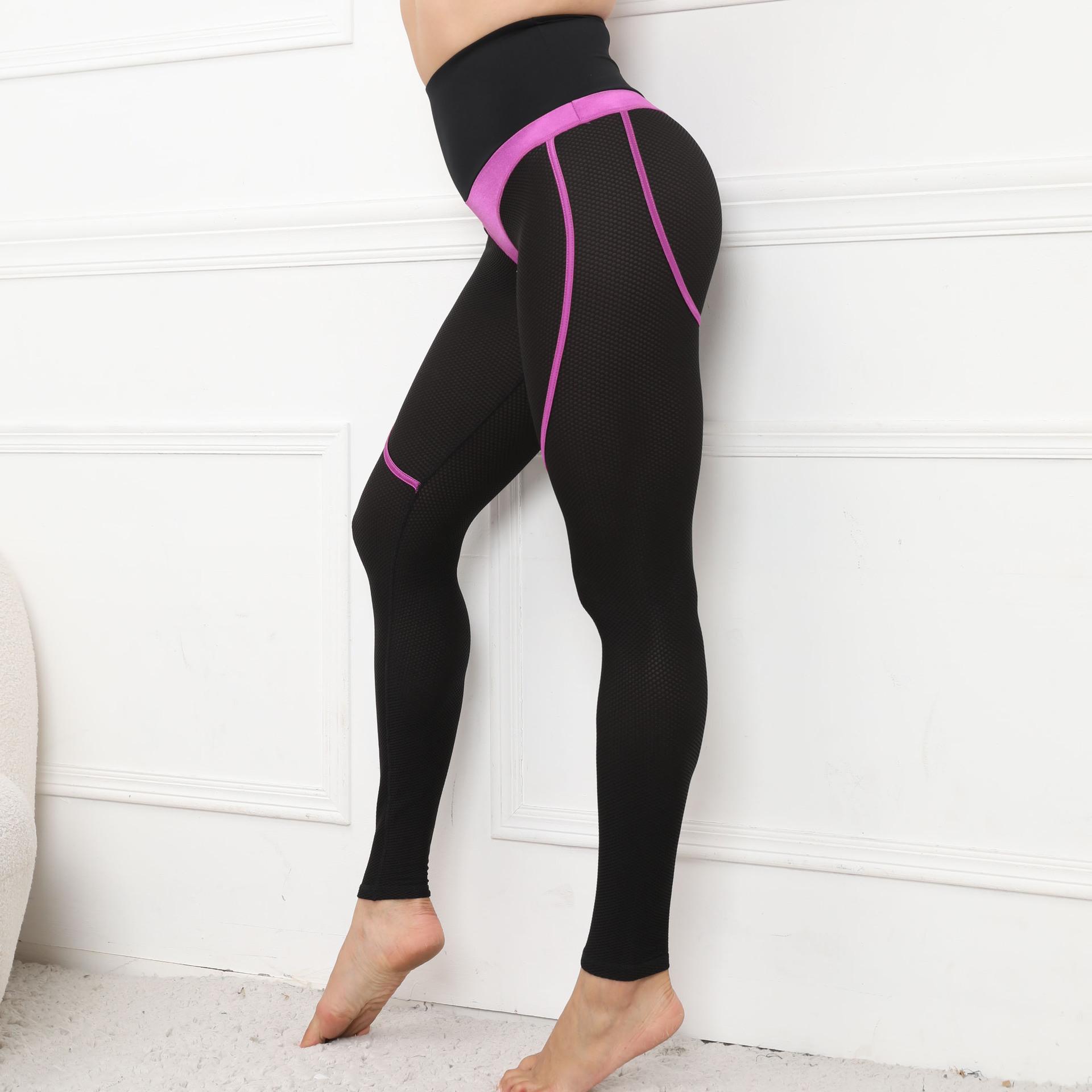 Pantalones deportivos de yoga con costuras, estilo europeo y americano, con realce de cadera y mallas, para mujer, para fitness al aire libre
