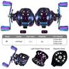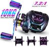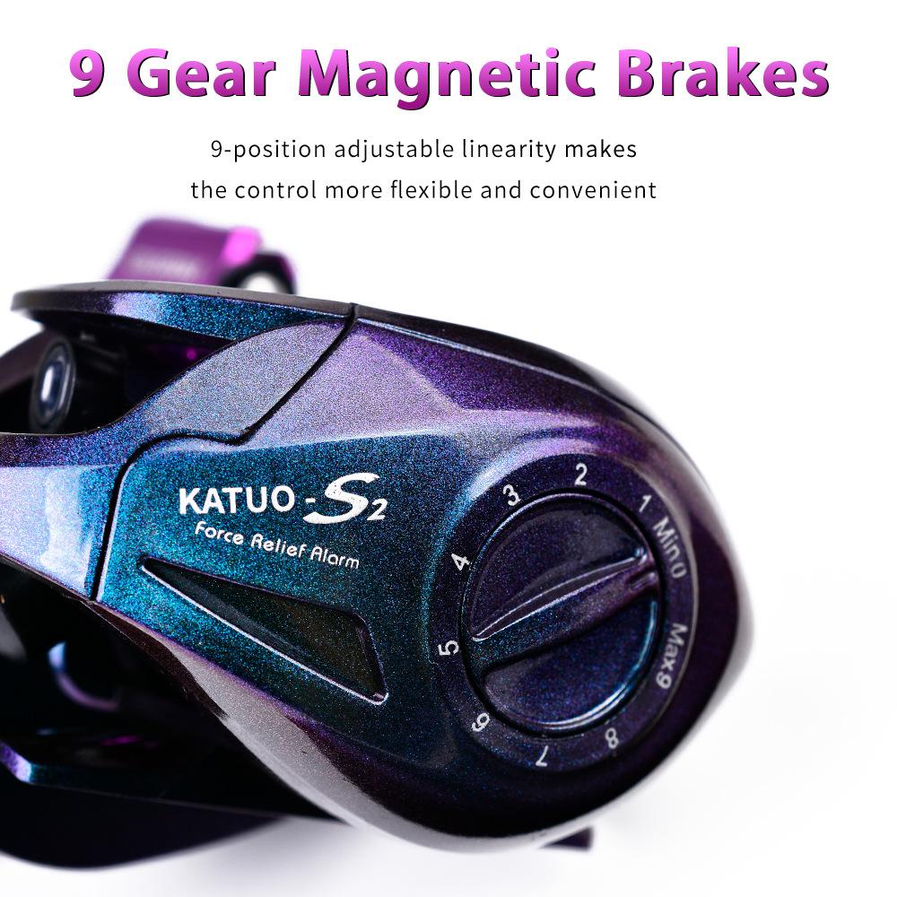 Este carrete de pesca tiene un kit de Clicker de Freno instalado en el cuerpo, lo cual es muy raro en otros carretes de pesca. Este kit hace que el carrete de baitcasting emita automáticamente un sonido de "clic-clic" cuando el pez muerde el cebo, ayudándote a detectar la señal de mordida de cada pez. No importa cuán pequeña sea la señal, puedes reducir la posibilidad de perder el pez. Balancín de metal, colorido y antideslizante, cómodo al tacto, fácil de girar