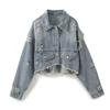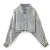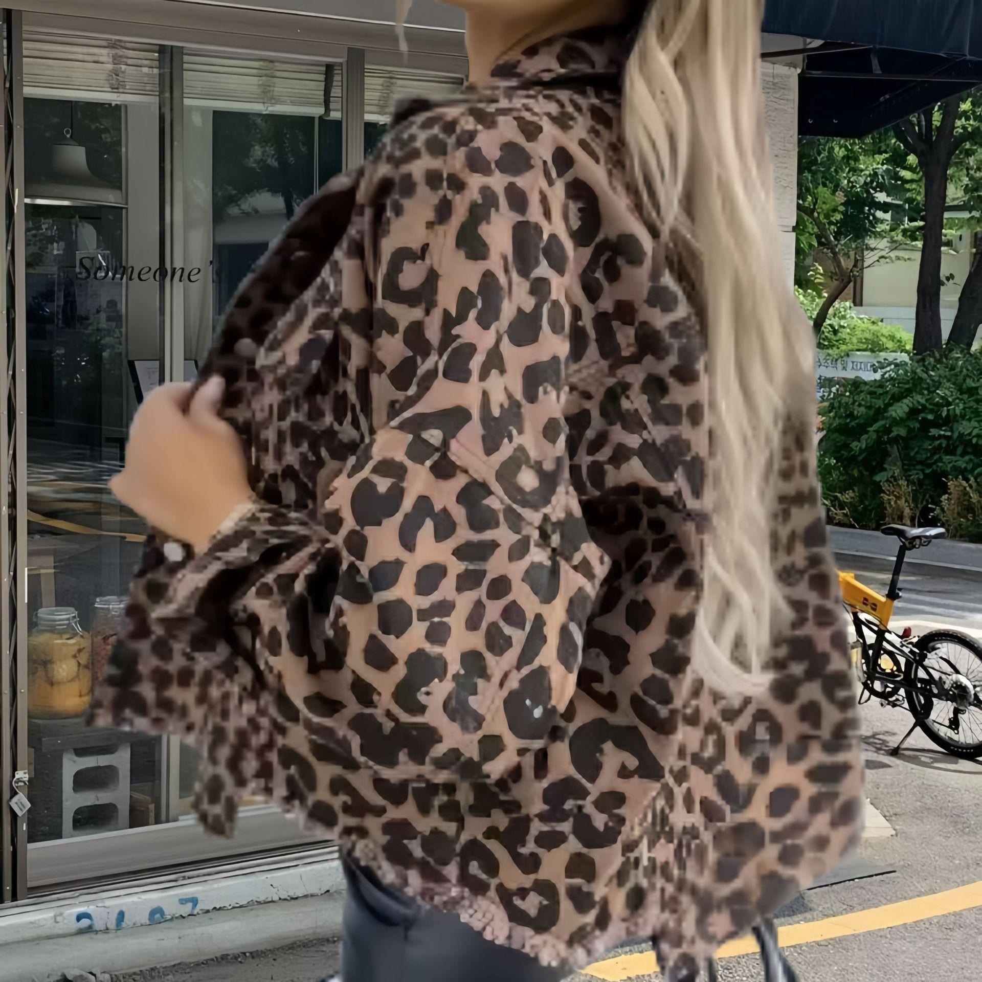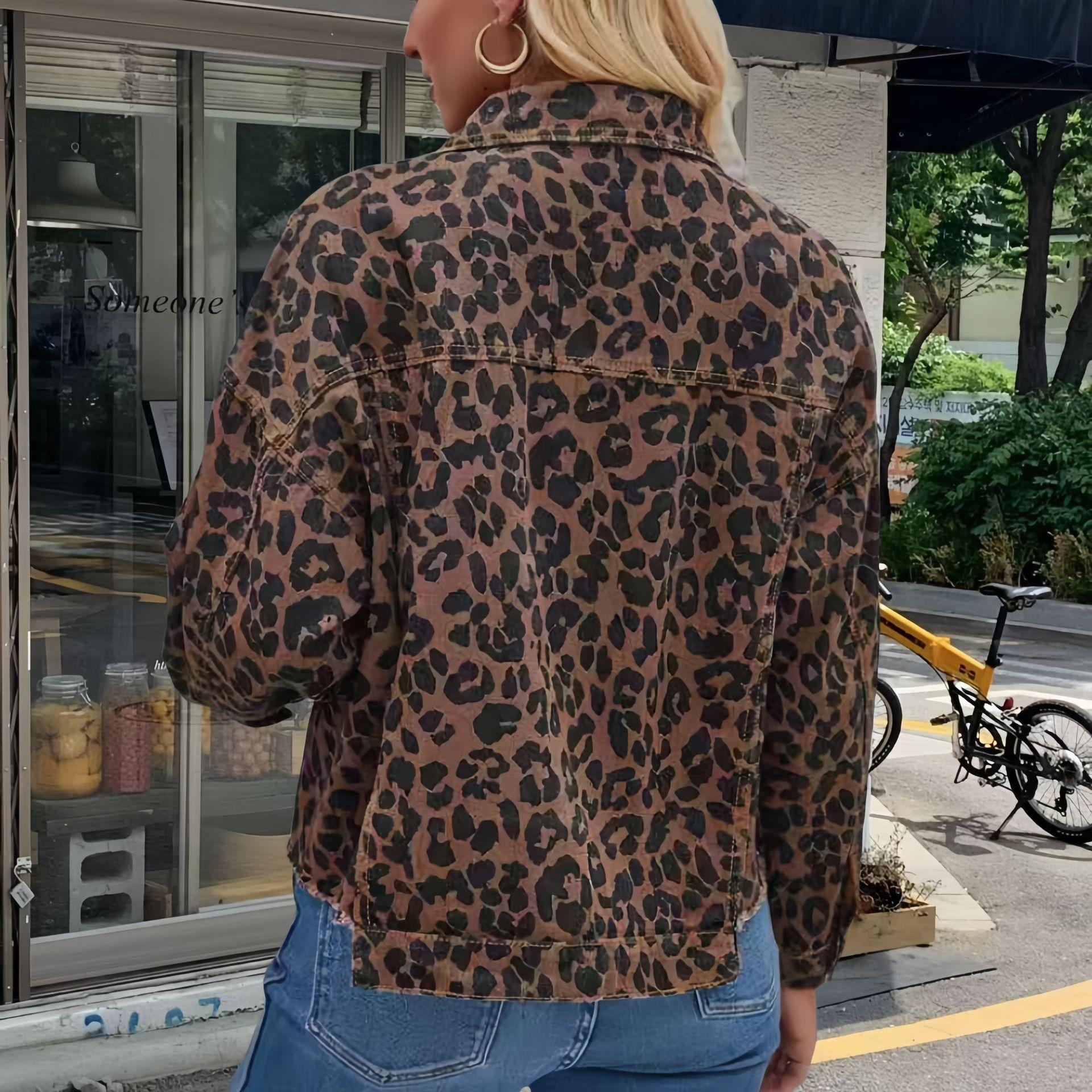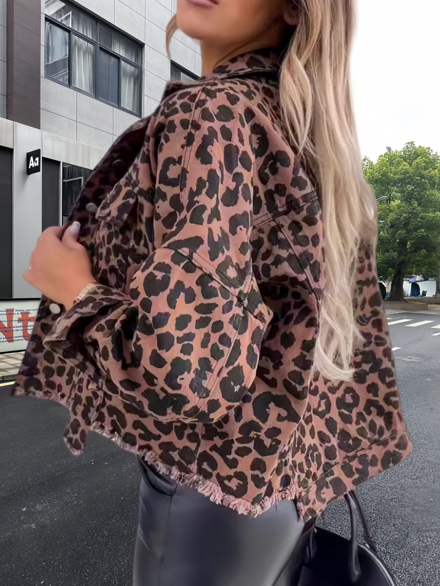 Europa y Estados Unidos transfronterizo nuevo otoño 2024 abrigo de mezclilla estampado de leopardo manga larga corto suelto casual abrigo de moda mujer