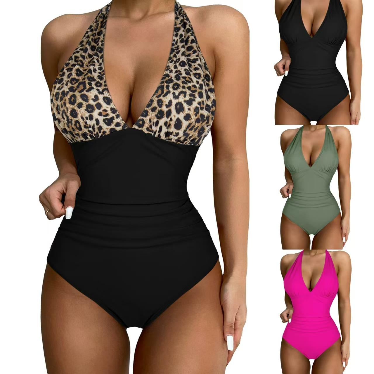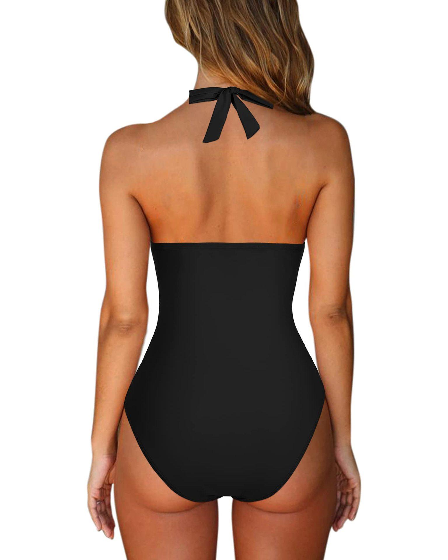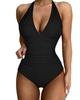 Traje de baño nuevo 2024 de Amazon para mujer europea y americana, traje de baño enterizo ajustado, traje de baño enterizo vintage plisado fruncido vintage
