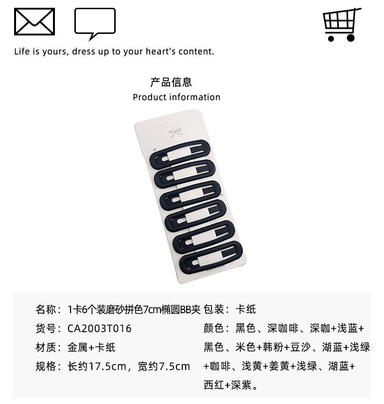 1 card 6 pack matte texture rubber paint baking process fashionable broken hair side versatile bb clip