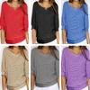 Suéter de cuello redondo de color liso de estilo europeo y americano transfronterizo para mujer, elegante camisa de siete mangas con aire acondicionado para desplazamientos diarios.