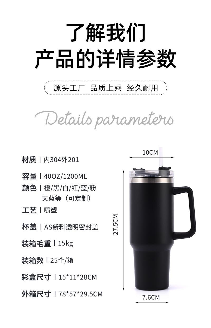 Generación transfronteriza segunda generación 40oz vaso para coche al aire libre gran capacidad vaso para hielo vacío aislamiento frío vaso termo con popote