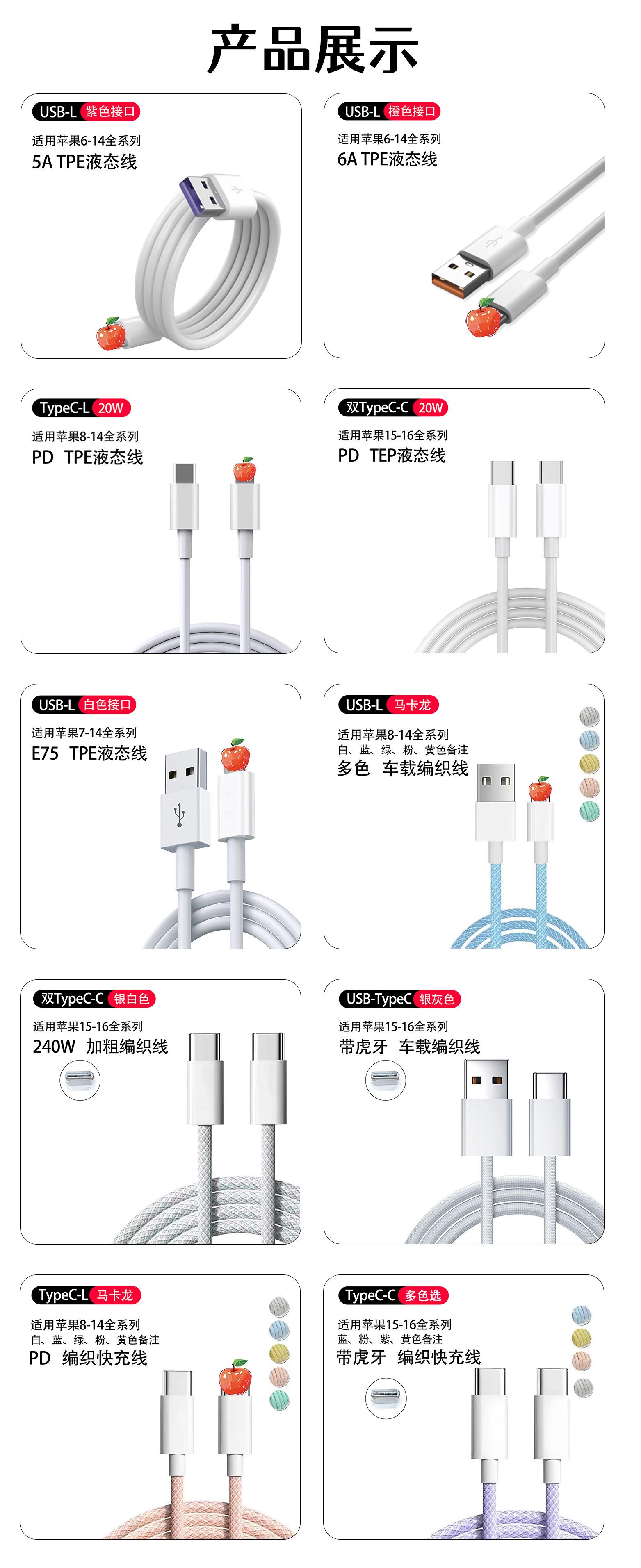 E75 Apple 7-14 Liquid Line★USB-L (white interface), Multicolor Apple 8-14 Car Braided Wire★USB-L (default blue...