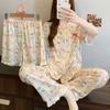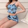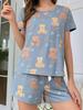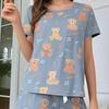 Conjunto de pijama Explosiones transfronterizas con estampado de oso de manga corta y pantalones. Pijama para mujer. Ropa para el hogar. Marca de lavado en inglés.