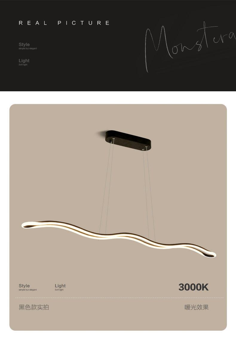 Lámpara de araña de restaurante, moderna y sencilla, para bar, comedor, estilo nórdico, con ondas, para mesa de comedor, minimalista, larga, para oficina