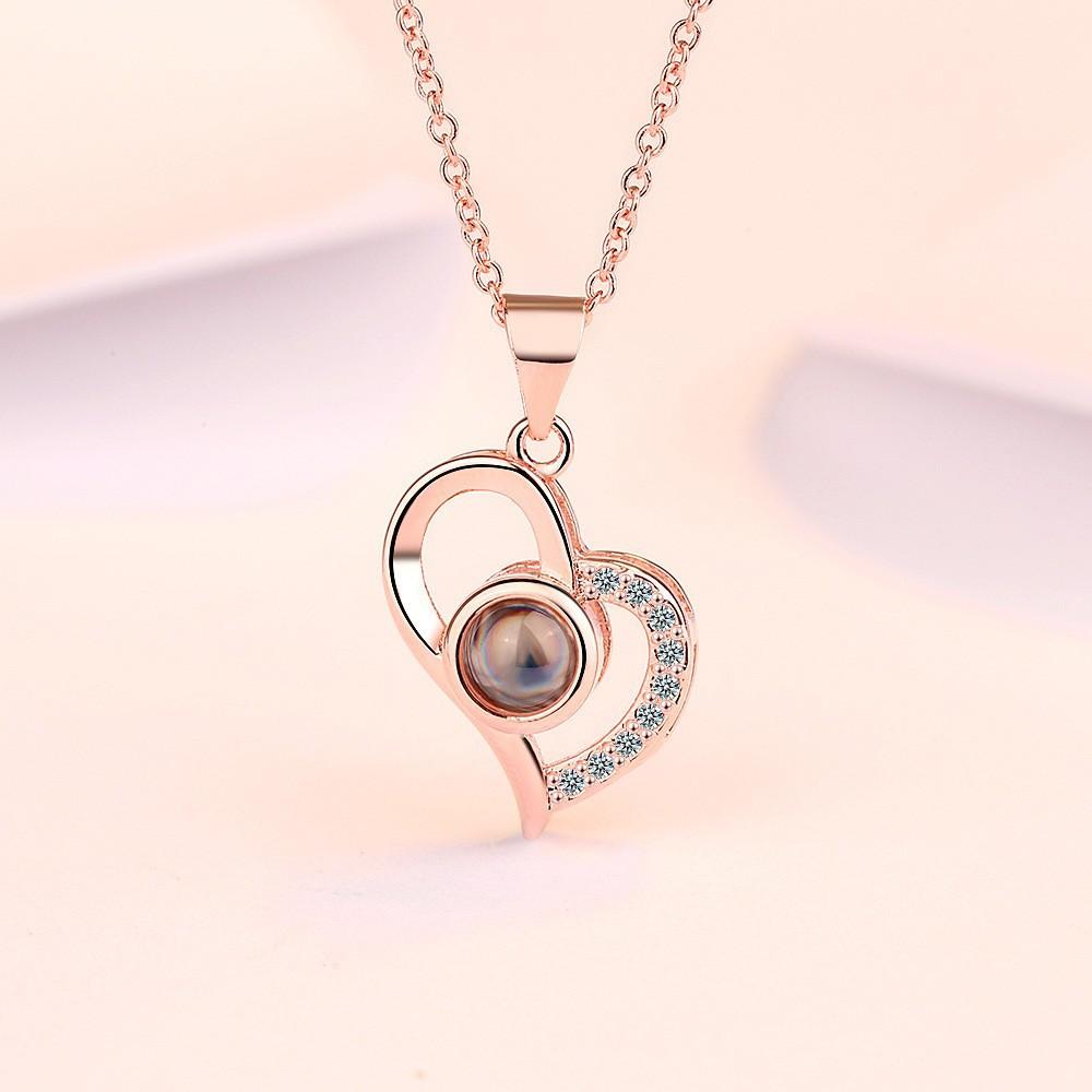 Collar Shake the same memory para mujer, 100 idiomas, te amo, proyección, corazón, colgante, cadena corta para clavícula.