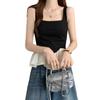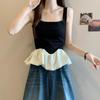 Camisola de Diseño Francés con Costuras Fruncidas Spice Girl Nuevo Verano Ajustada sin Mangas Nicho Estilo Occidental Top para Mujer
