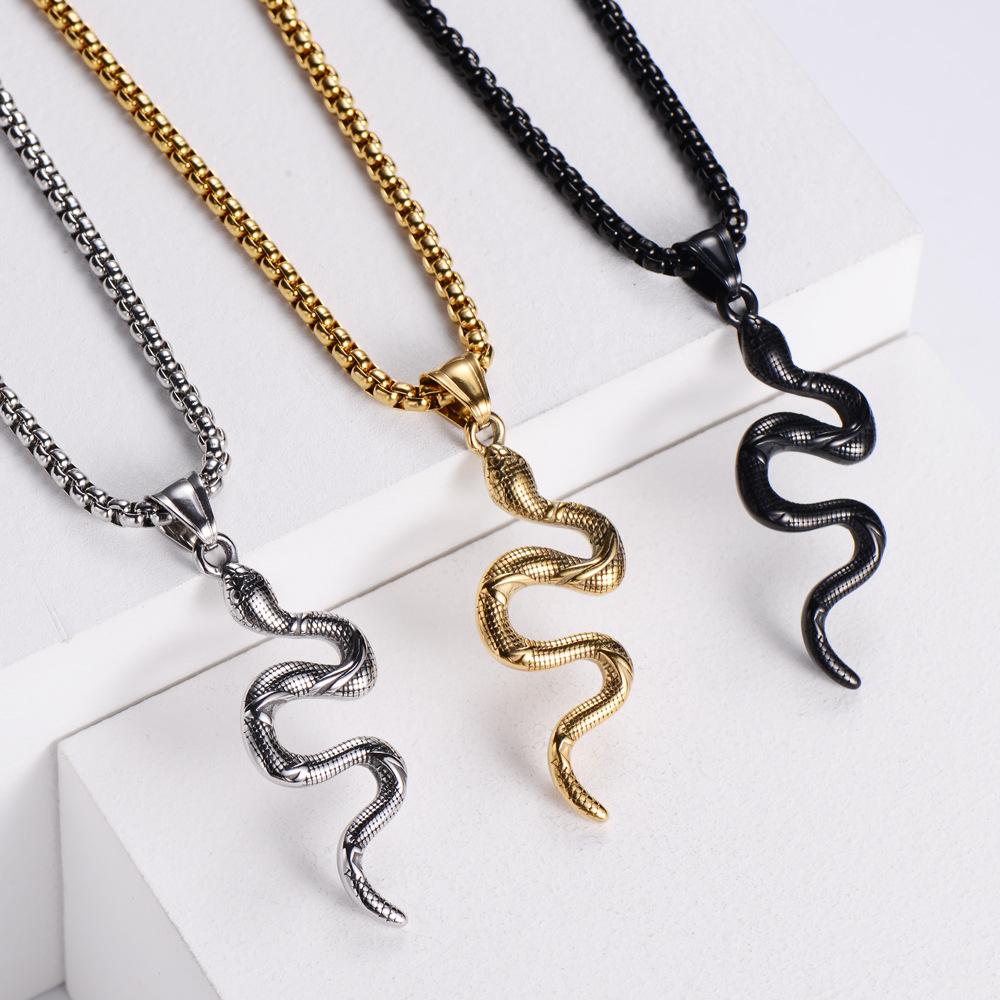 【Nuevo en nuestra tienda] E-commerce transfronterizo personalidad creativa cobra animal del zodiaco serpiente acero inoxidable colgante collar ventas directas de fábrica
